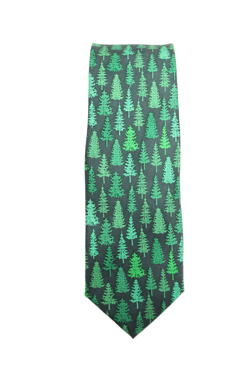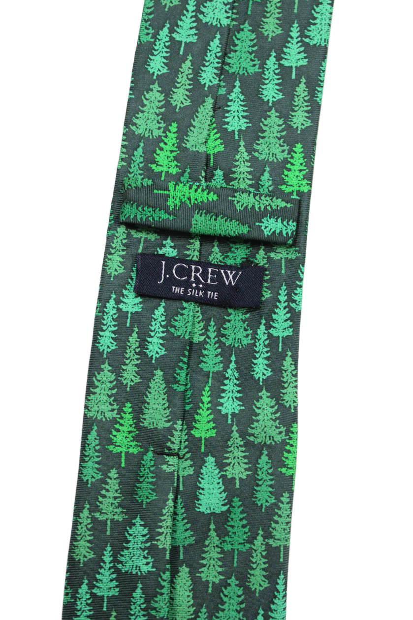 J Crew Mens Silk Pine Tree Print Narrow Necktie Green