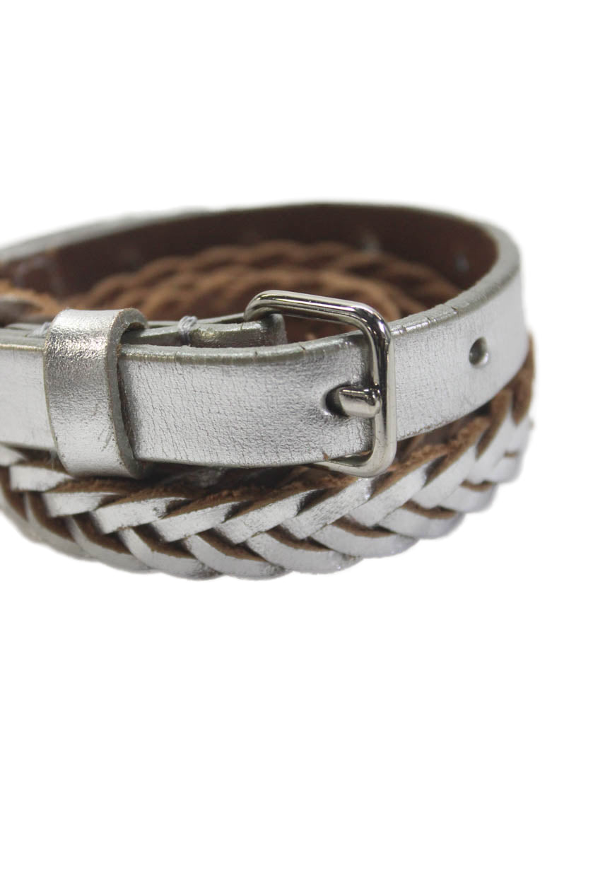 J Crew Womens Leather Braided Skinny Belt Gray Size S