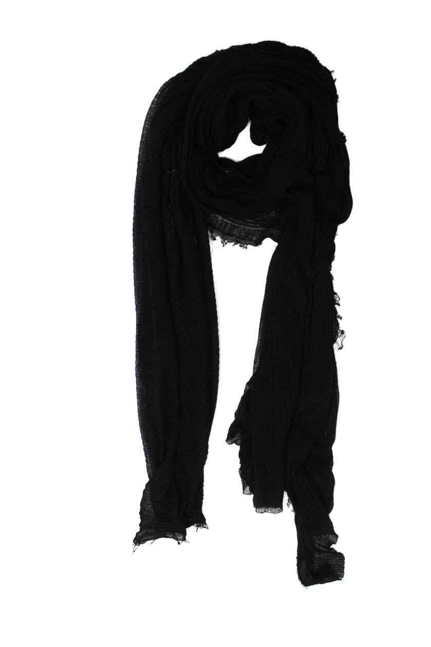 Theory Women's Sheer Raw Hem Wrap Scarf Black Size 44" X 30"