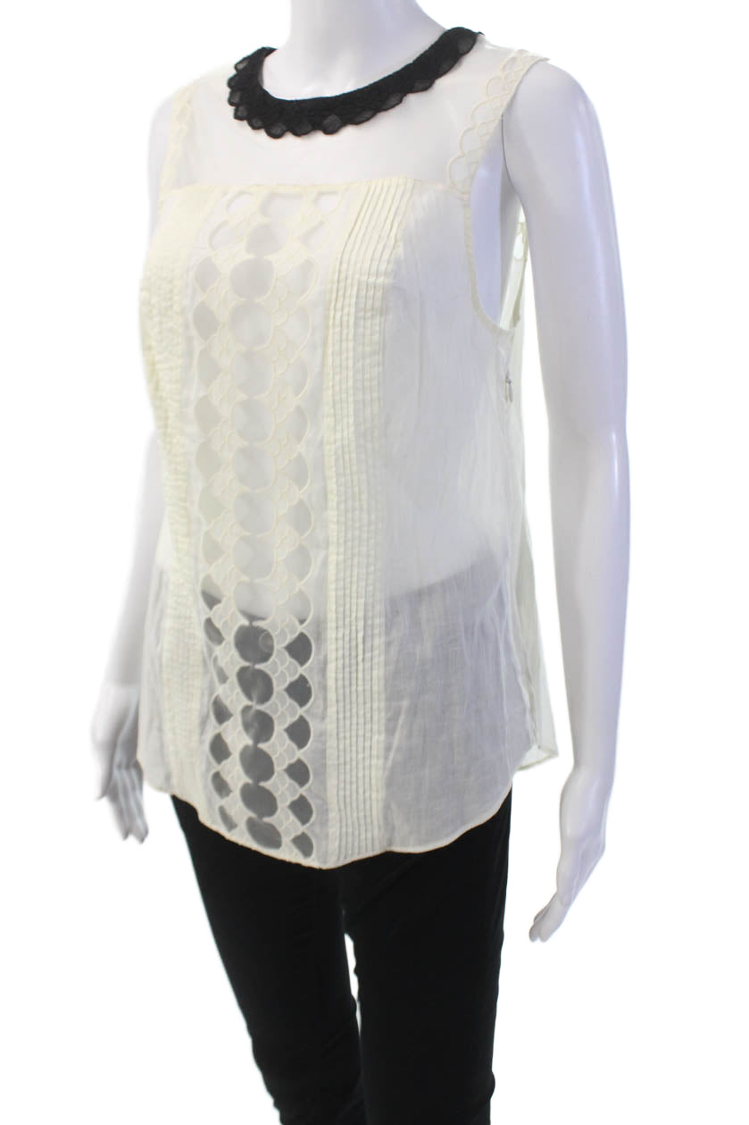 9-H15 STCL Womens Cotton Crew Neck Pleated Sleeveless Blouse Top White Sie 6