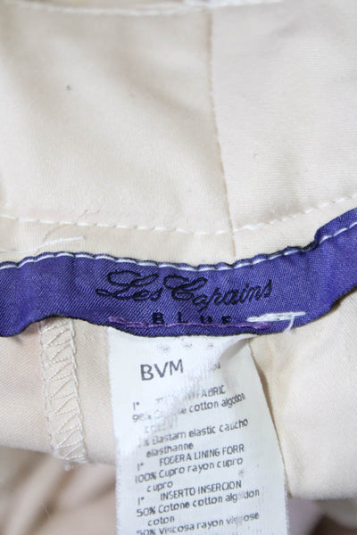 Blue Les Copains Womens Zip Front Tapered Leg Pleated Casual Pants Beige 24 in