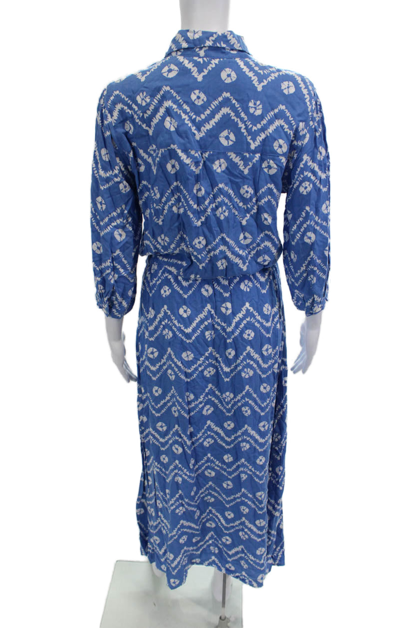 Boheme by Skemo Women Maxi Shirt Dress Blue Geometric 3/4Sleeve Size L