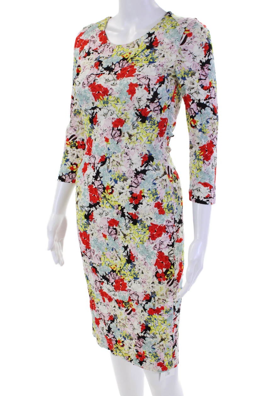 Erdem Womens Long Sleeves Round Neck Bodycon Mini Dress Floral Size 2