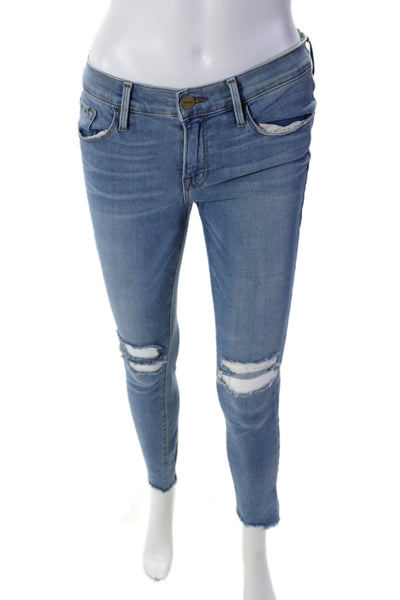 Frame Denim Womens High Rise Distressed Skinny Cropped Jeans Blue Size 28