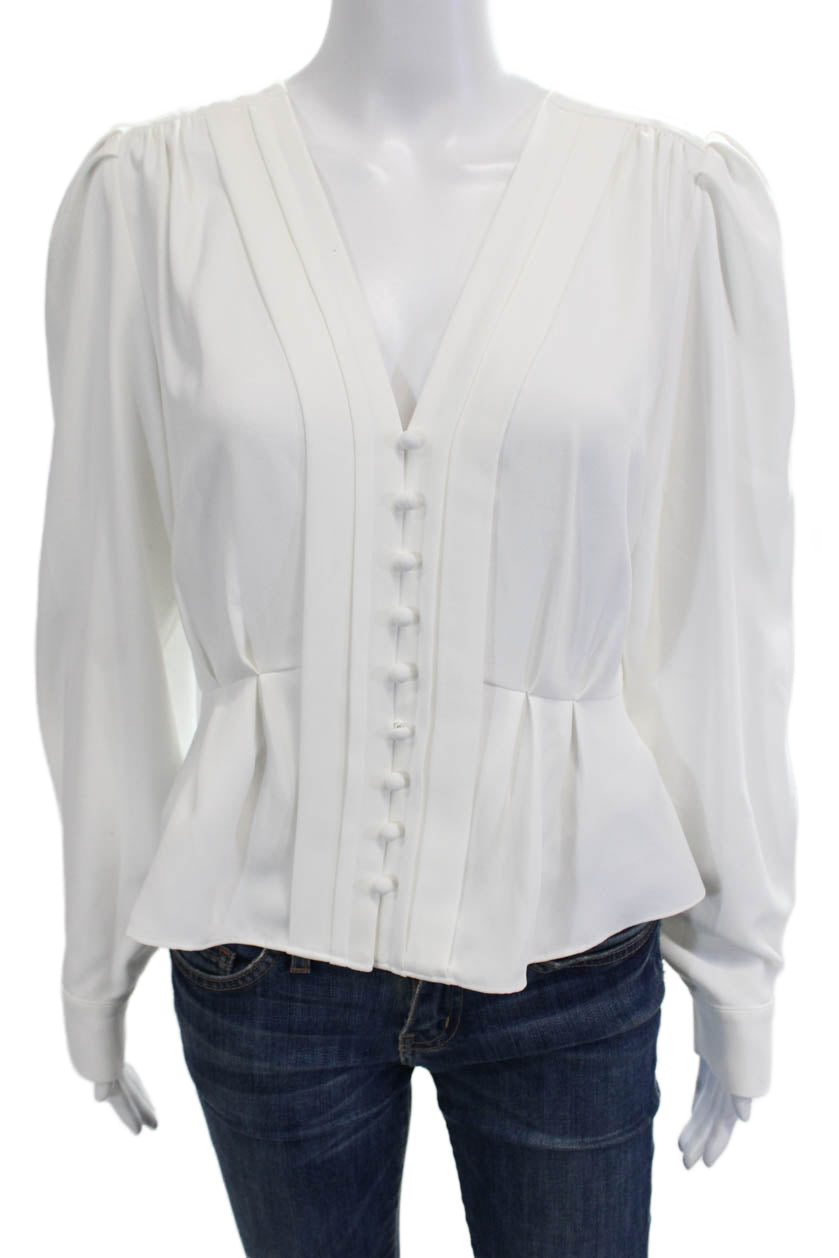 The Kooples Womens White V-Neck Button Up Blouse Long Sleeve Polyester Size 2