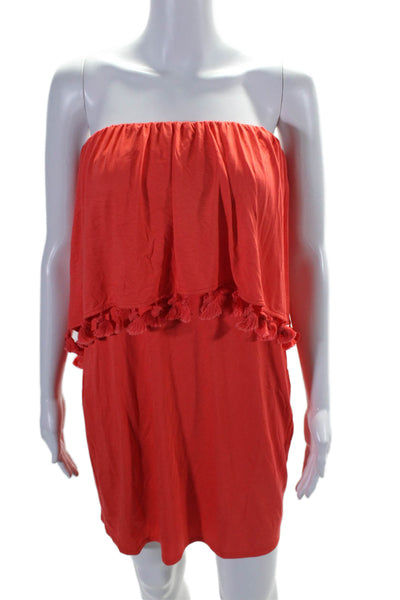 Trina Turk Women's Elastic Waist Pull-On Tassel Midi Skirt Red Size S