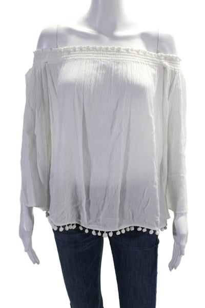 Lilly Pulitzer Women's Off The Shoulder Long Sleeves Tassel Blouse White Size S