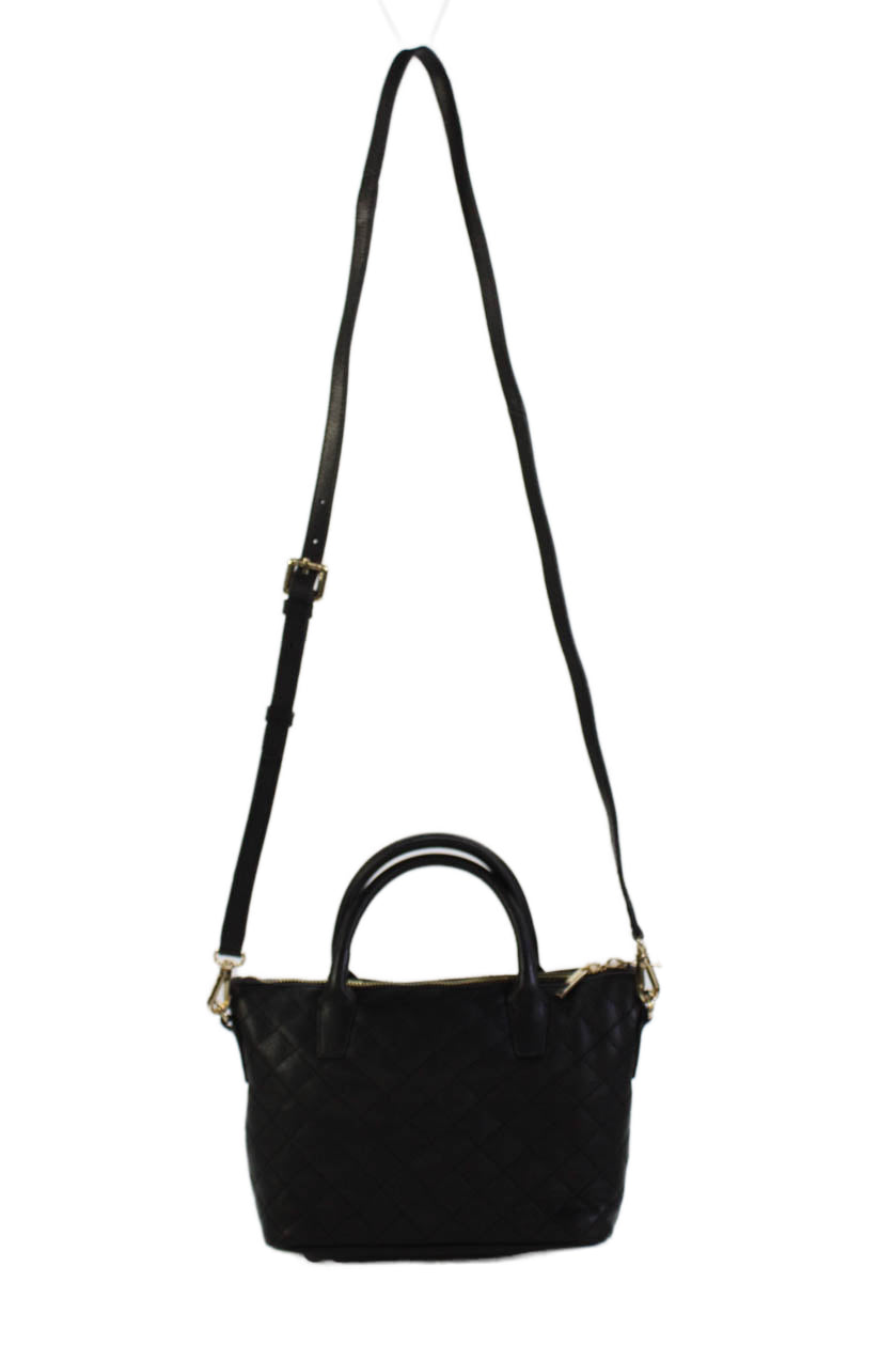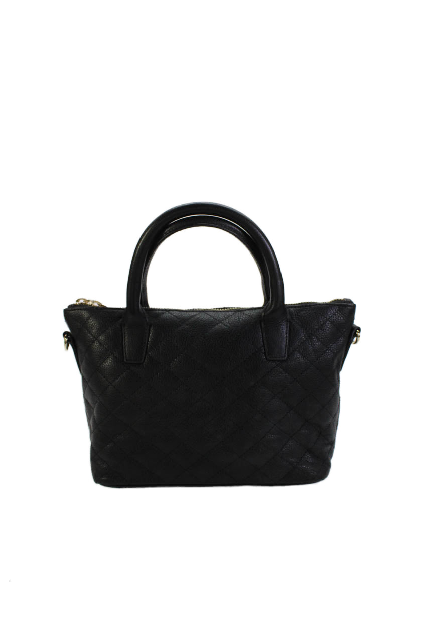 Barneys New York Womens Leather Quilted Top Handle Bag Black