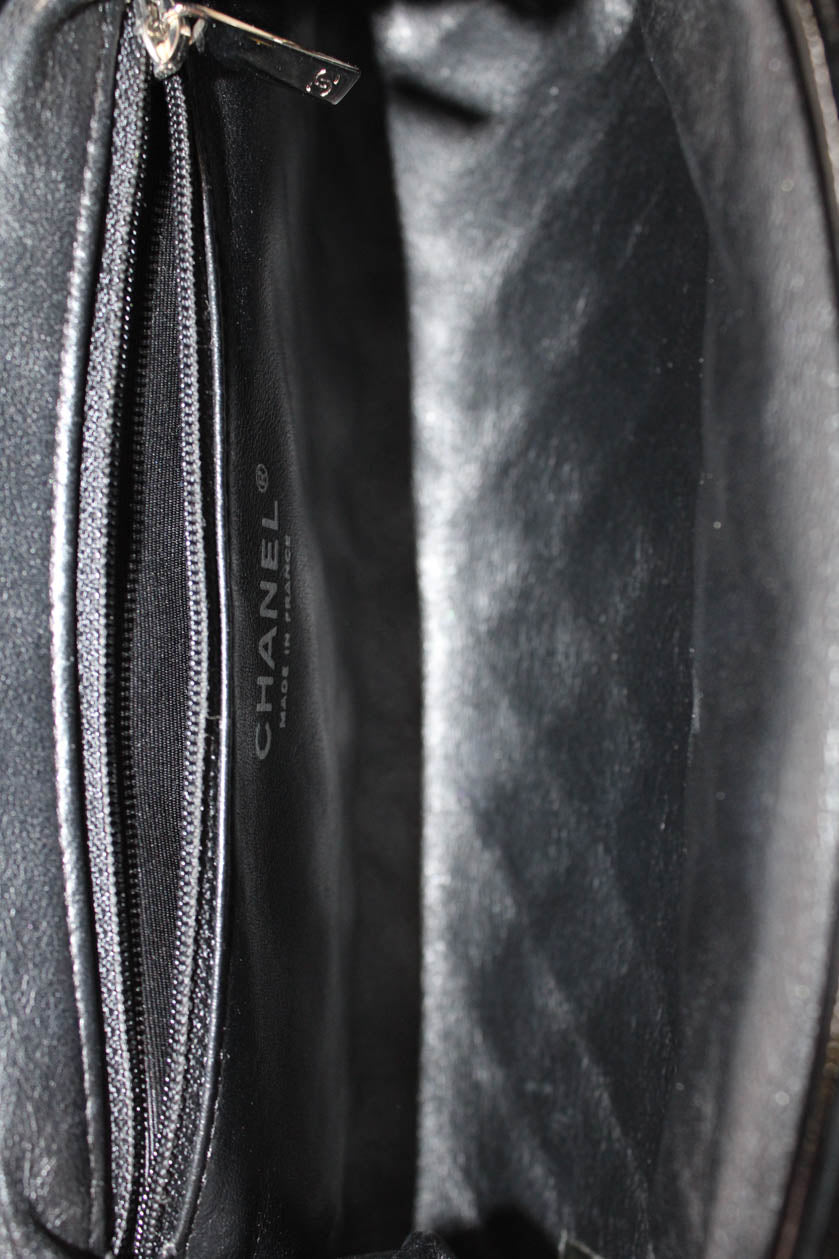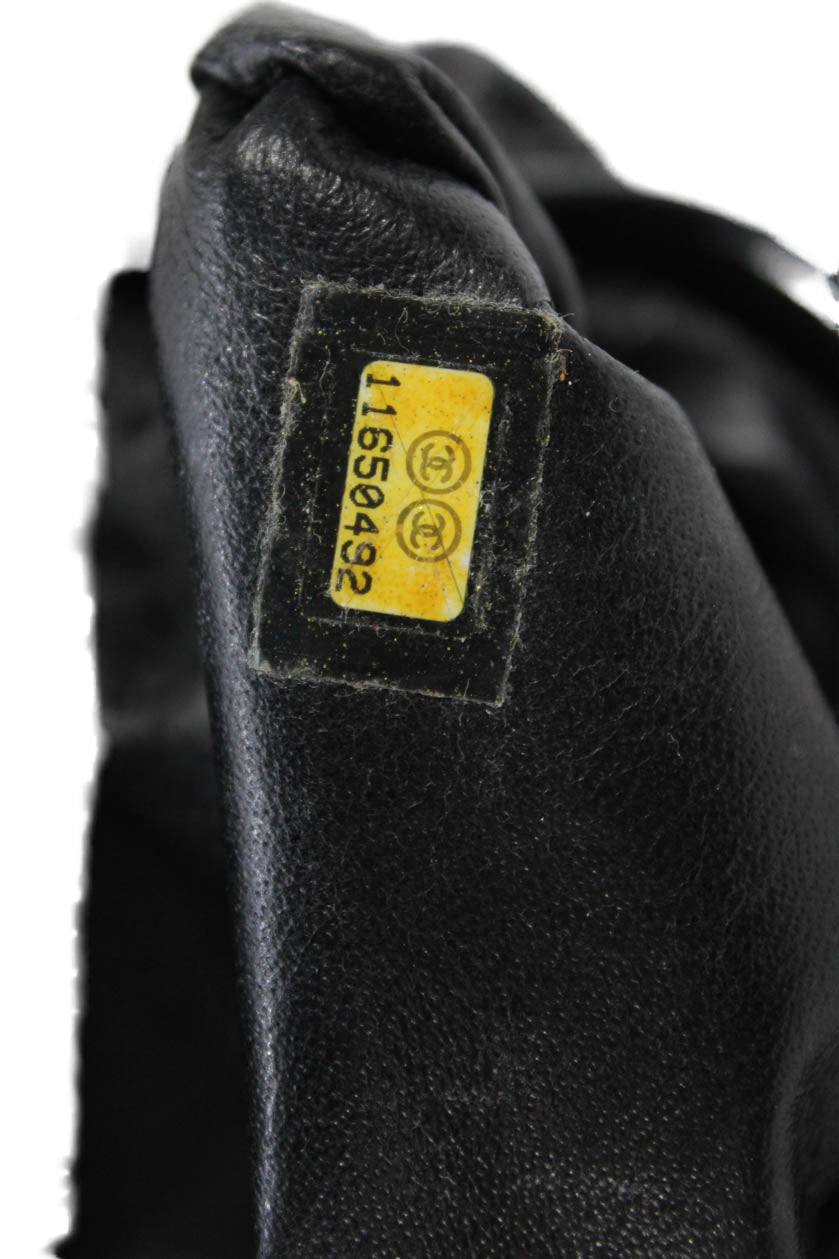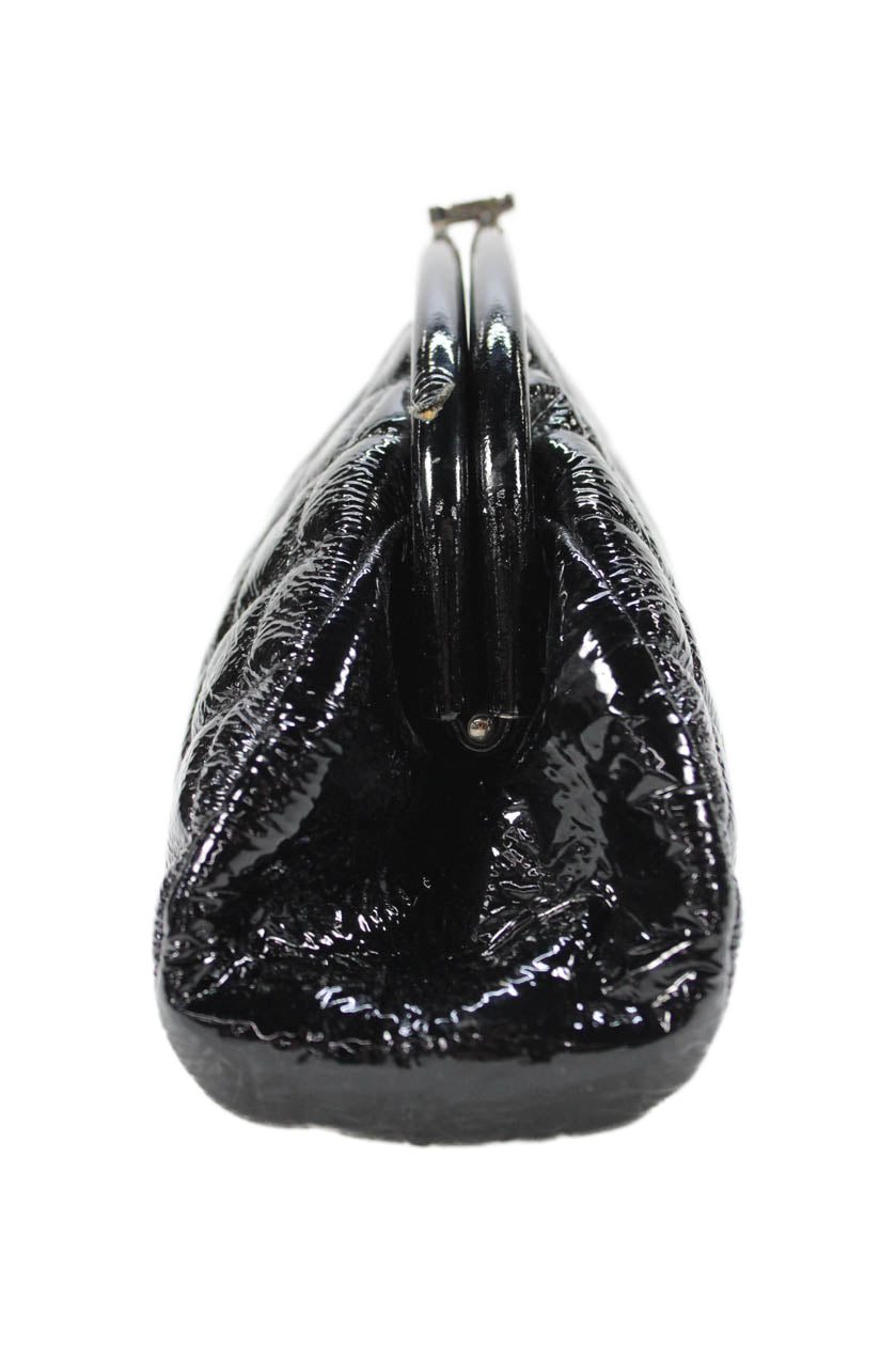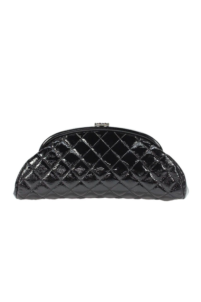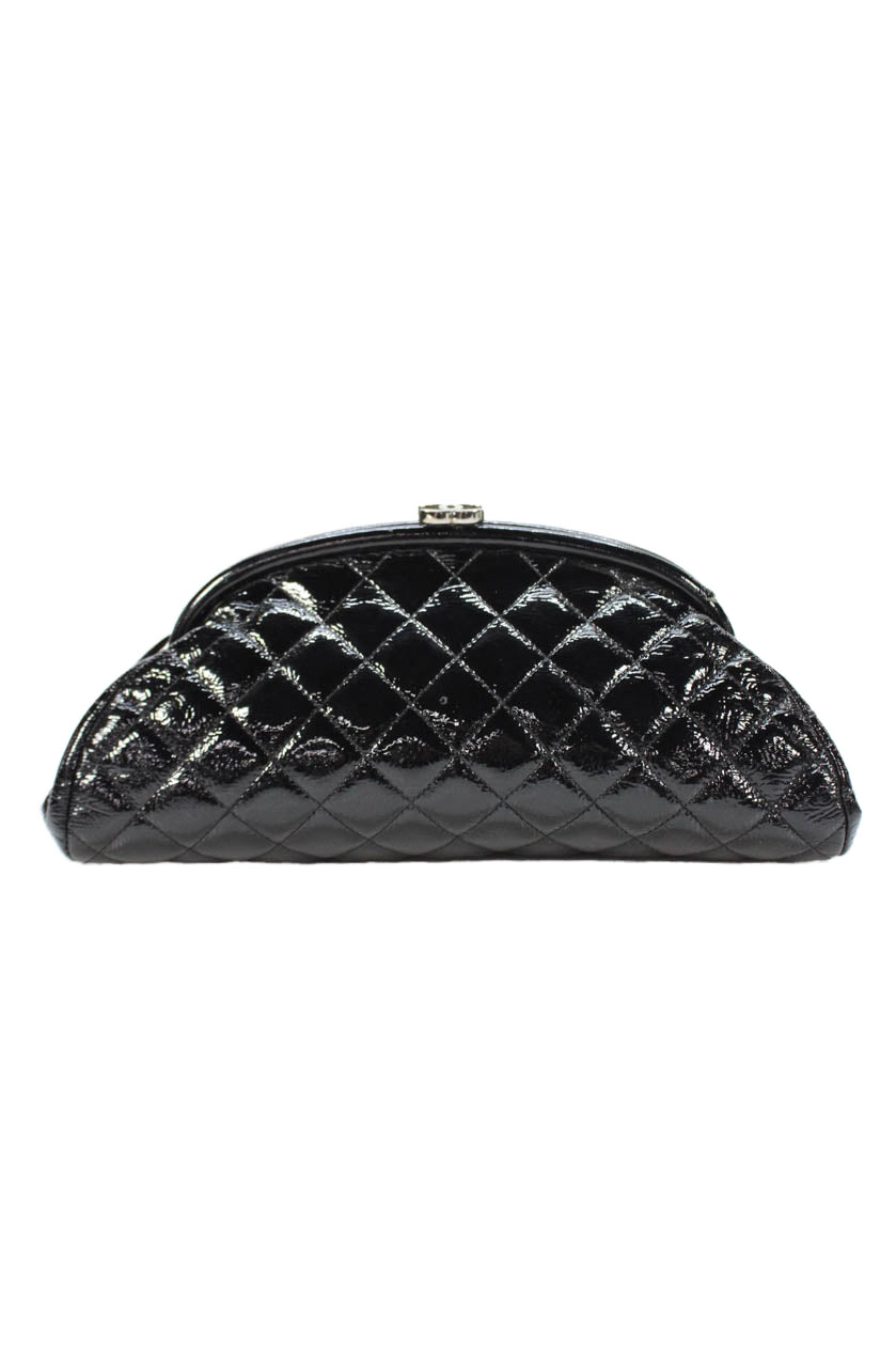 Chanel Womens Quilted Patent Leather CC Logo Clasp Timeless Clutch Handbag Black