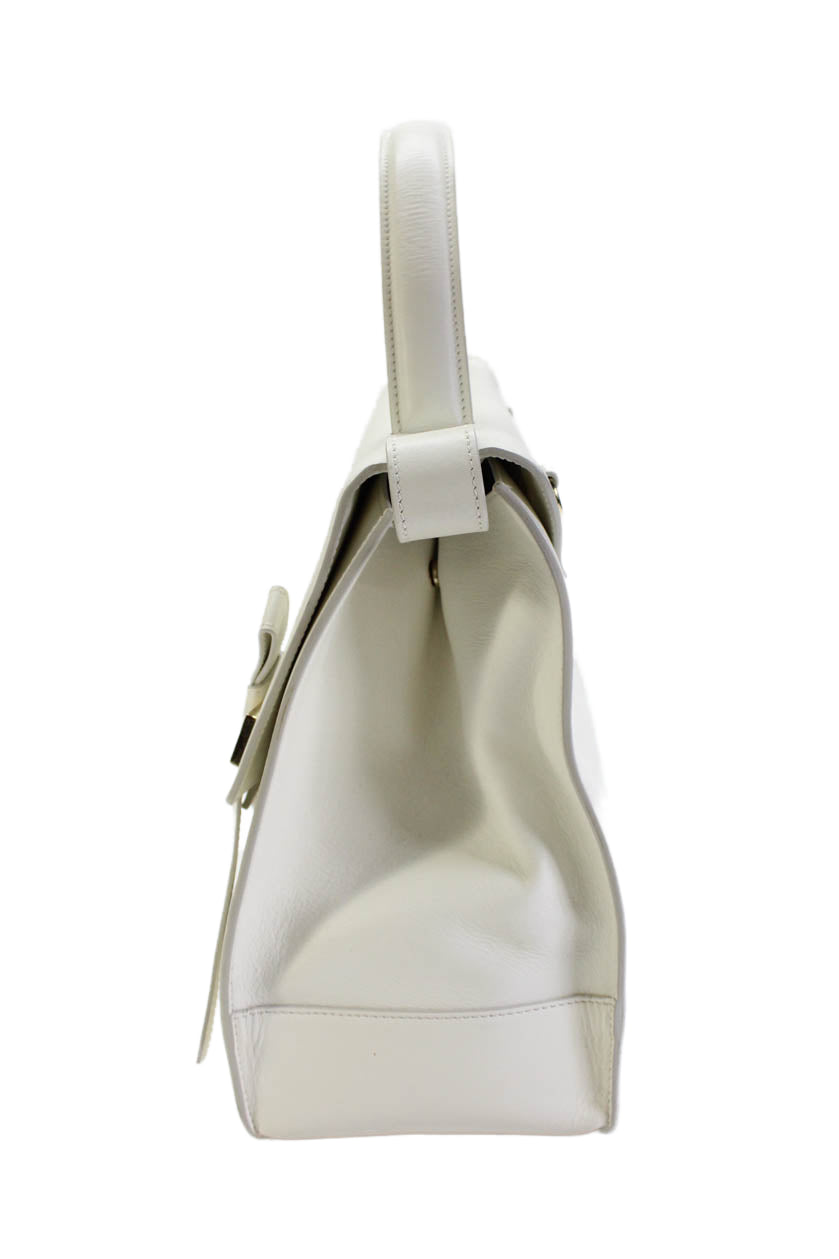 Escada Women's Leather Snap Closure Gold Hardware White Tote Handbag