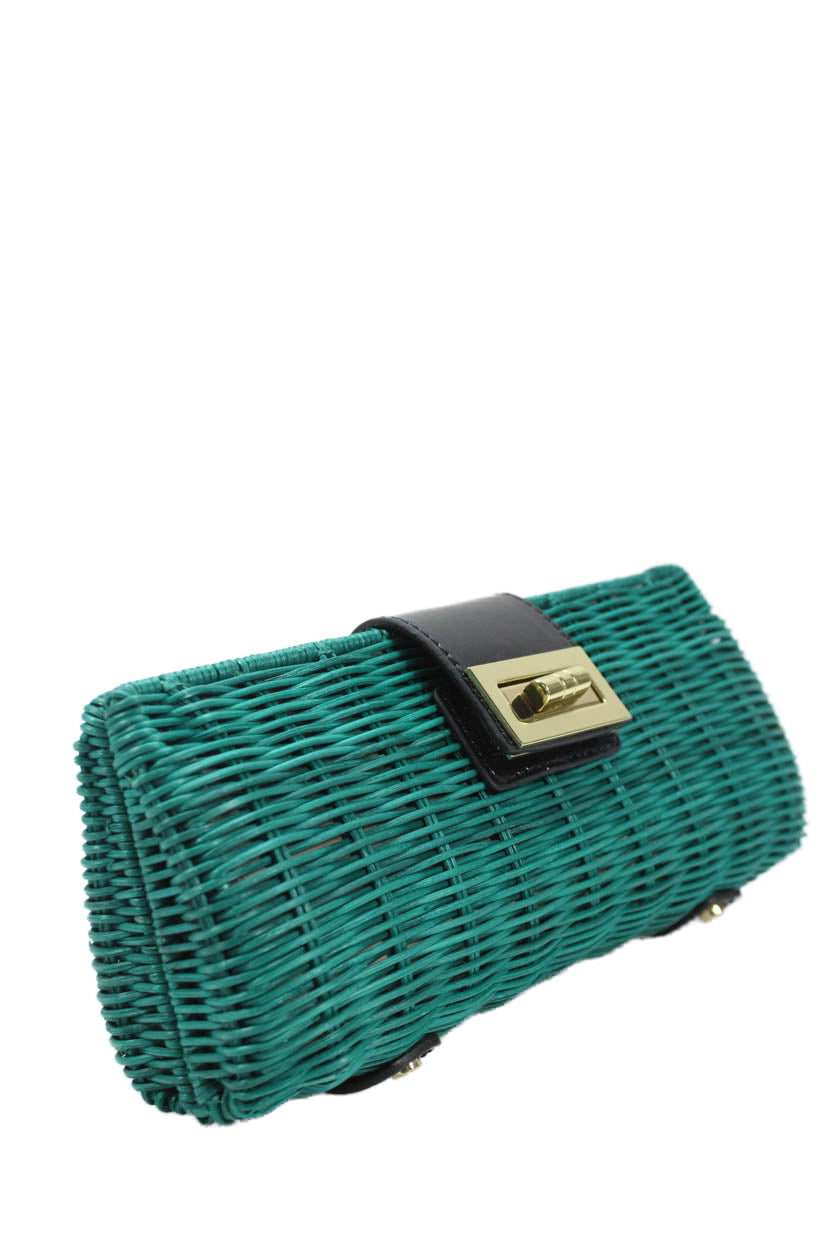 J Crew Womens Turnlock Wicker Clutch Handbag Green Black Gold Tone