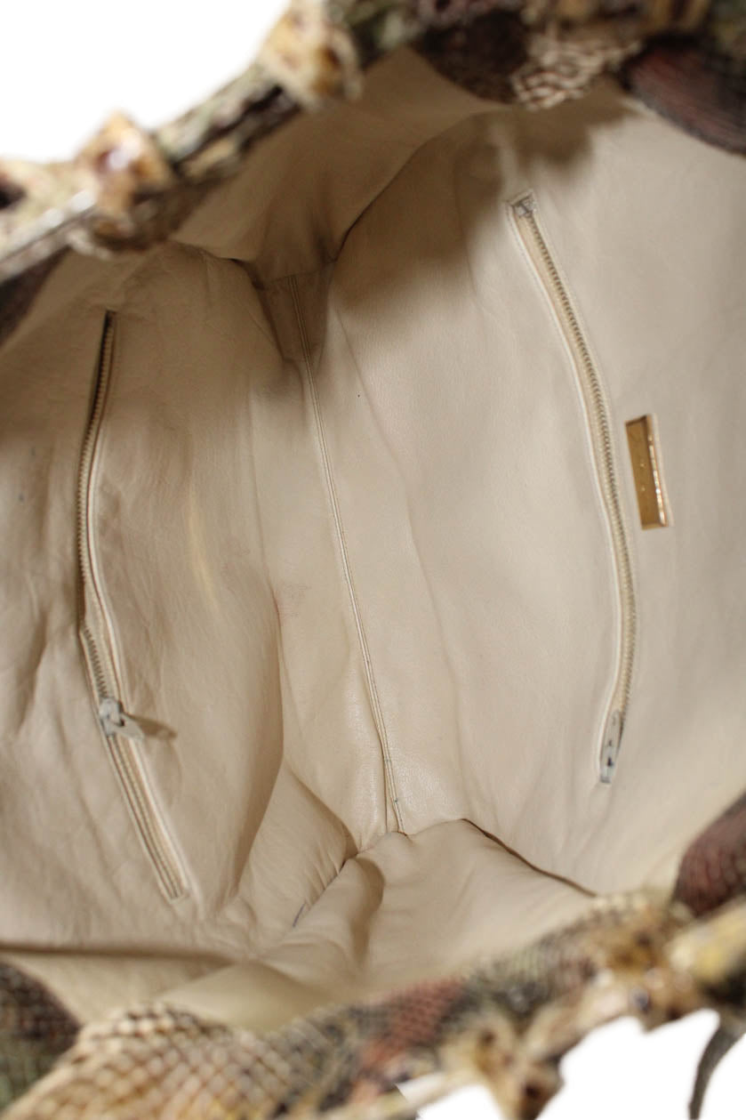 Judith Leiber Womens Snake Skin Buckle Bag Handbag Brown