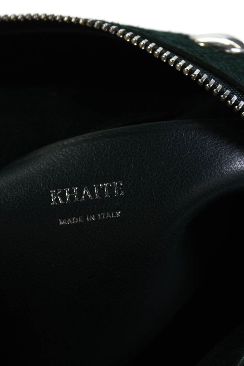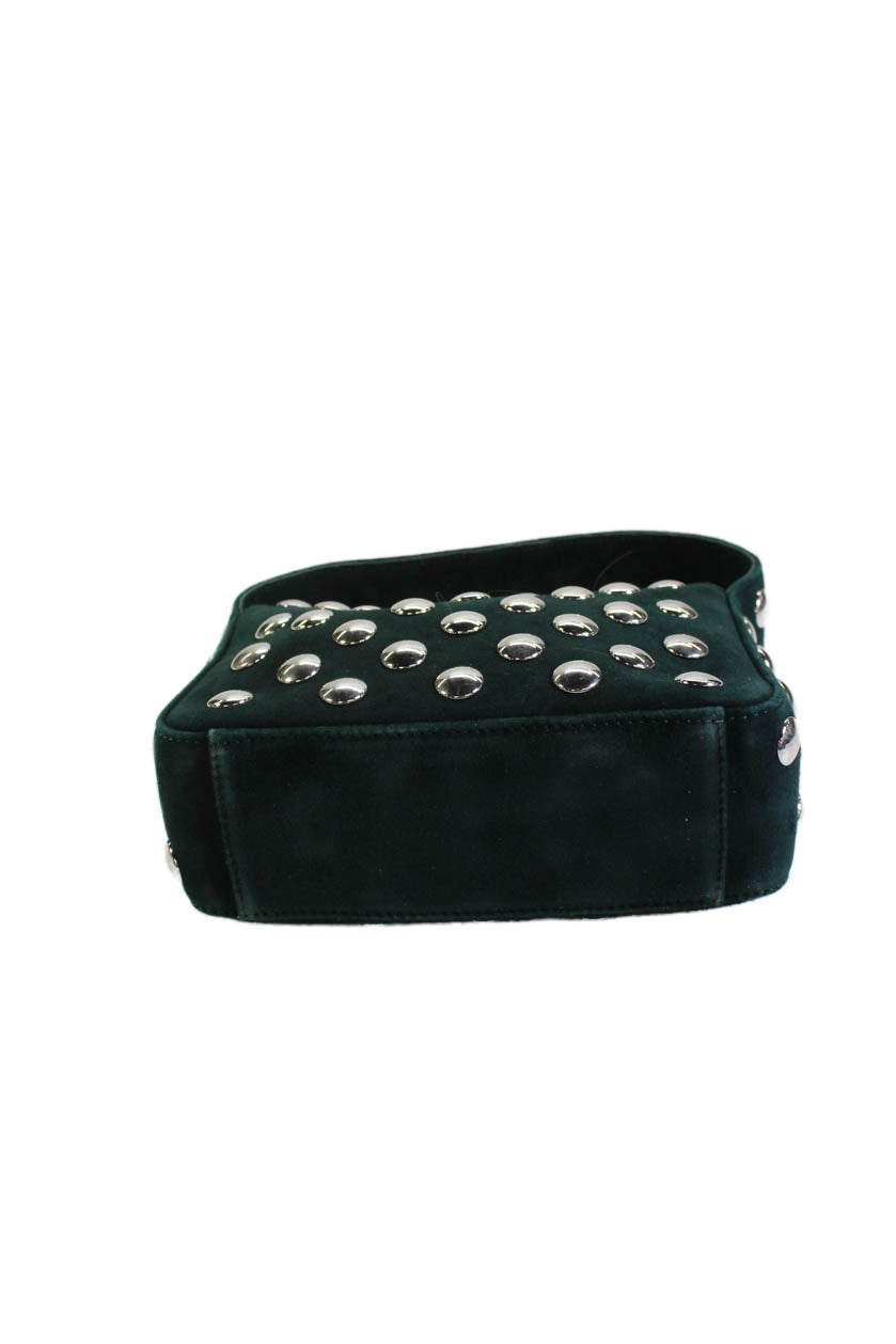 Khaite Womens Suede Silver Tone Studded Satchel Shoulder Handbag Green