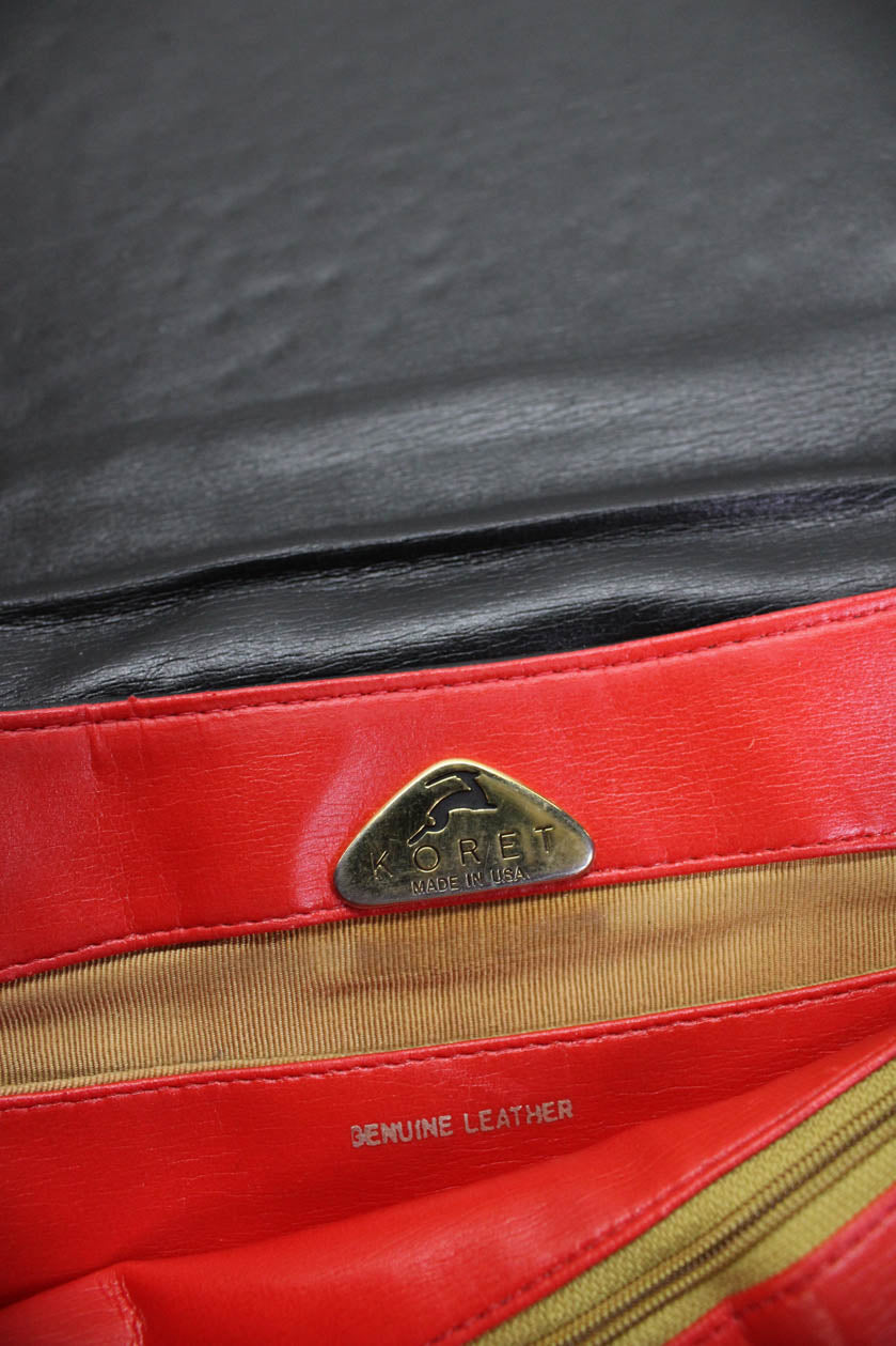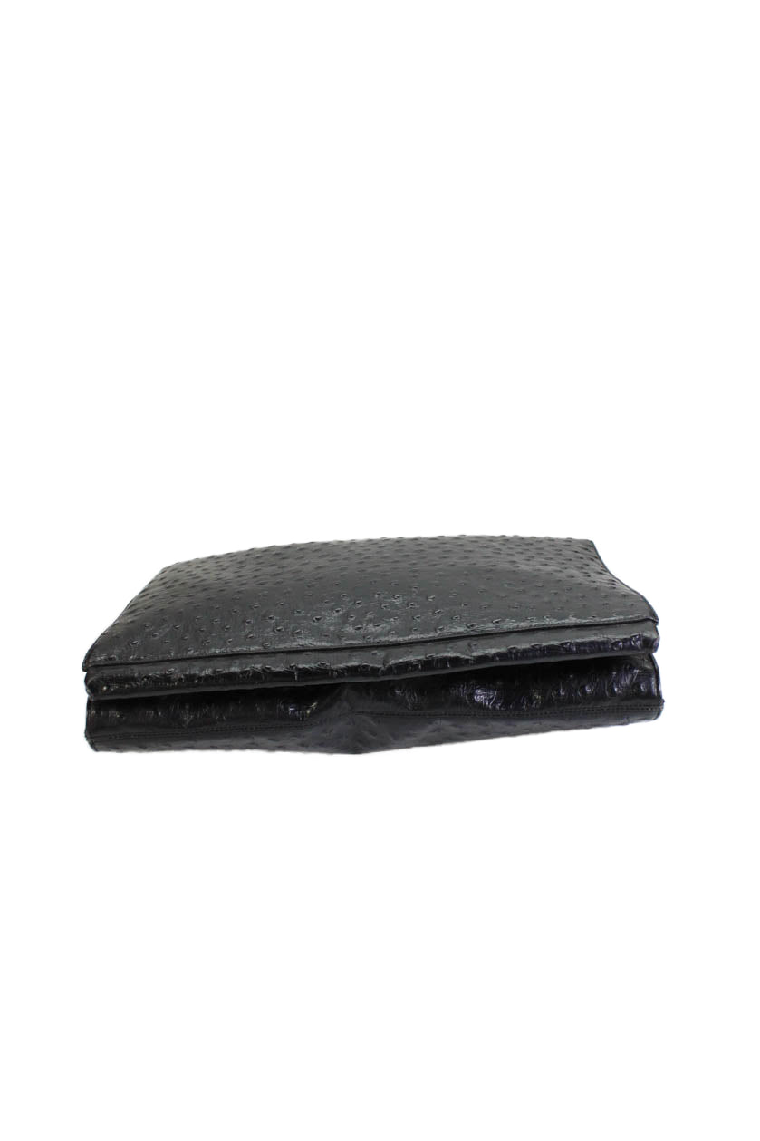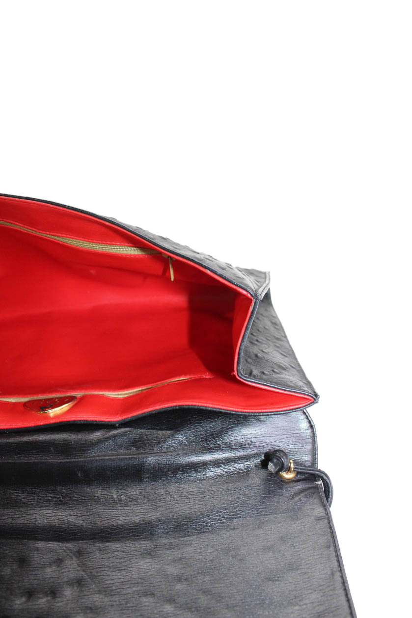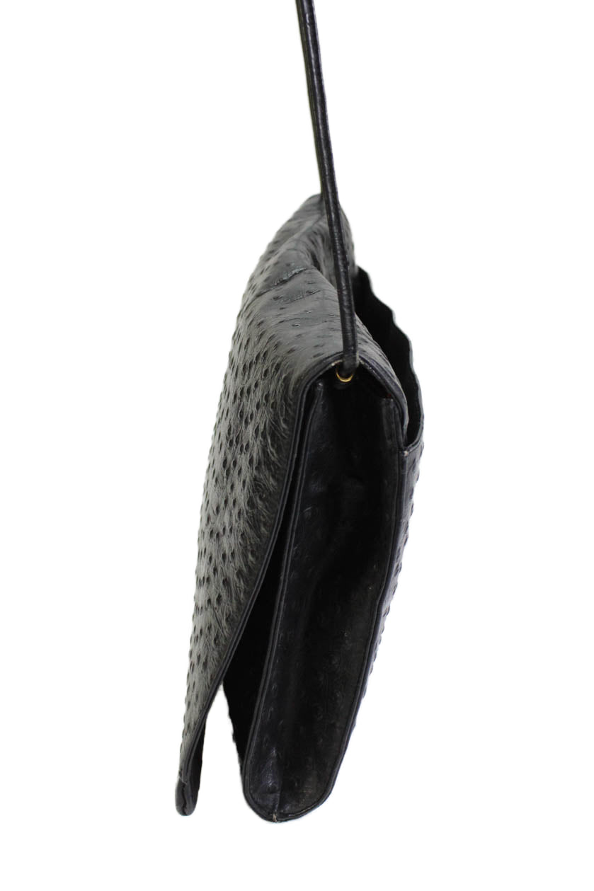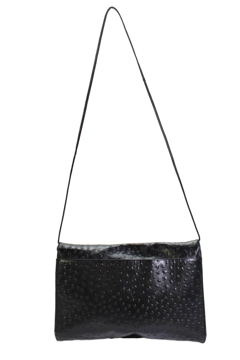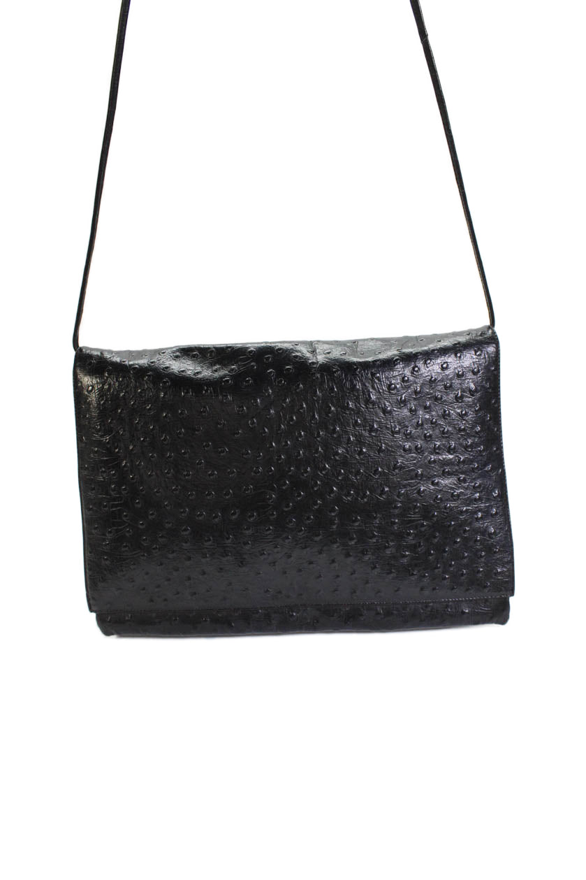 Koret Womens Leather Ostrich Print Crossbody Shoulder Handbag Black
