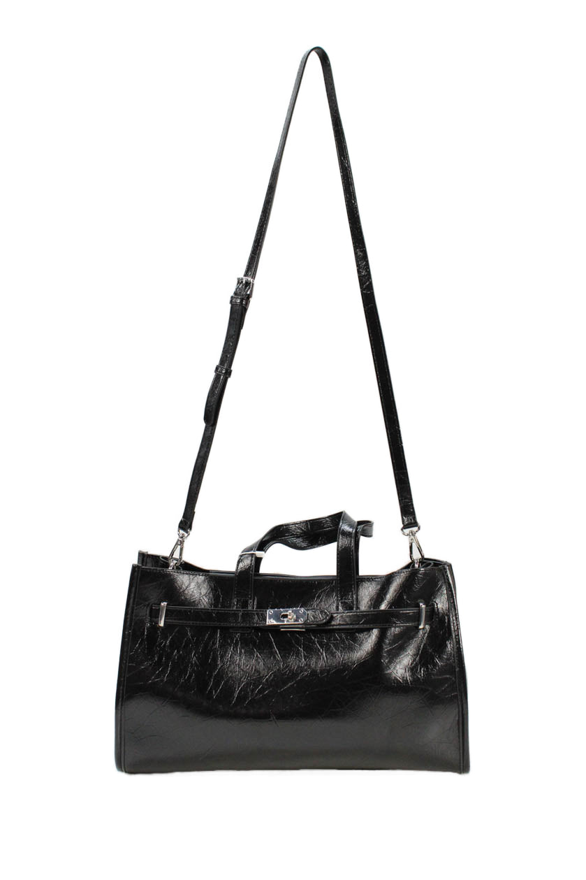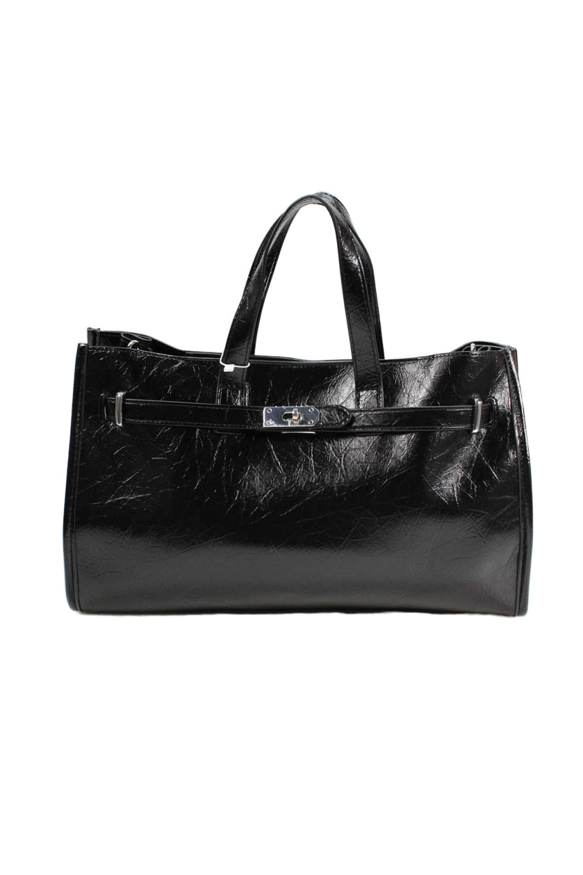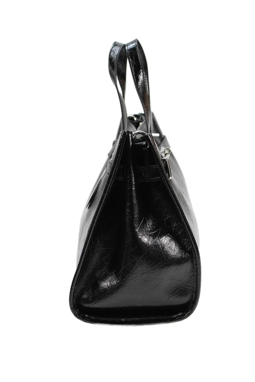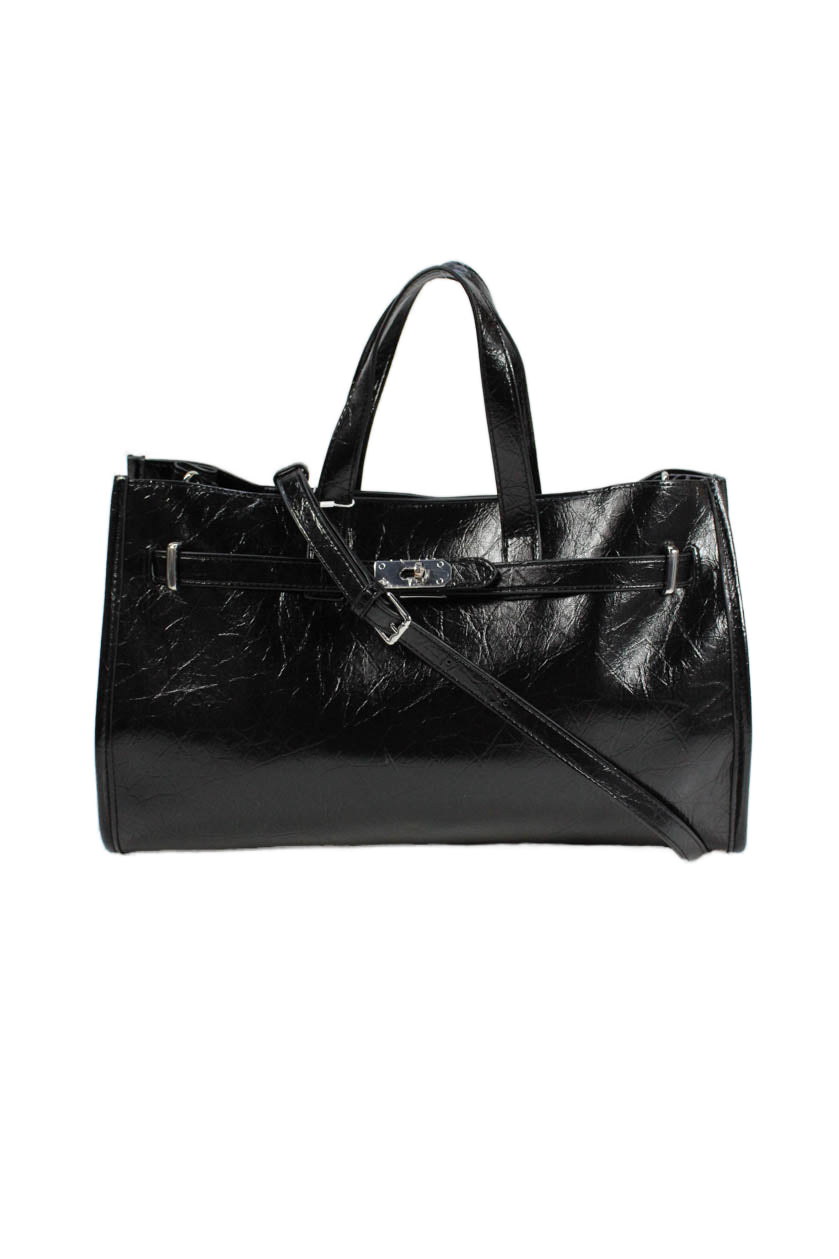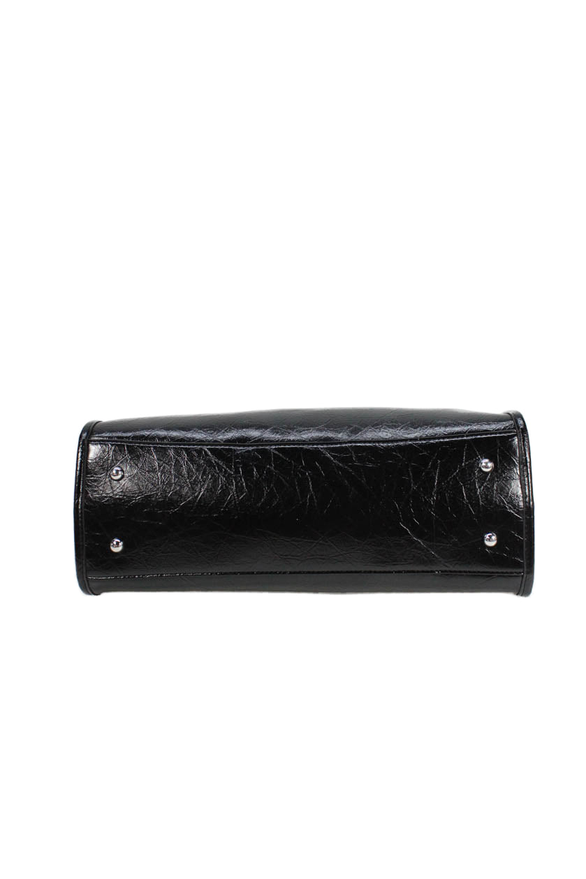 Melie Bianco Women's Snap Closure Top Handle Black Tote Handbag