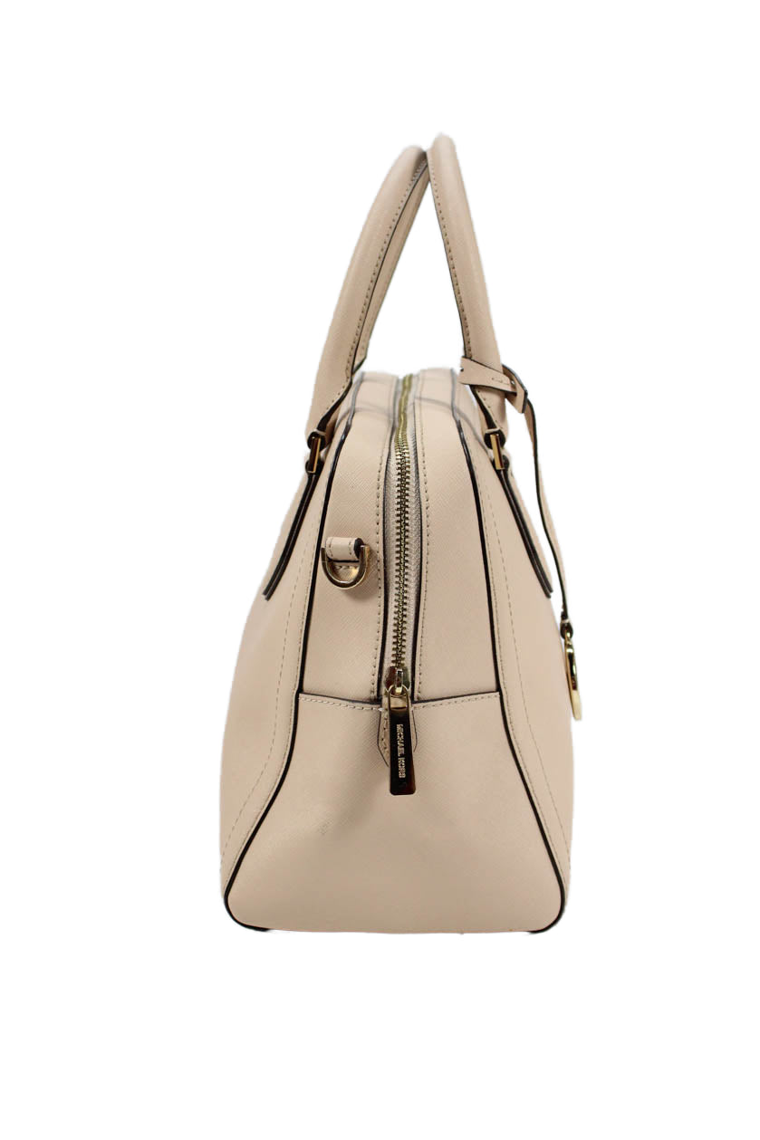 Michael Kors Womens Leather Gold Tone Crossbody Shoulder Handbag Beige