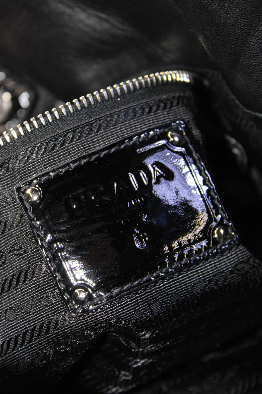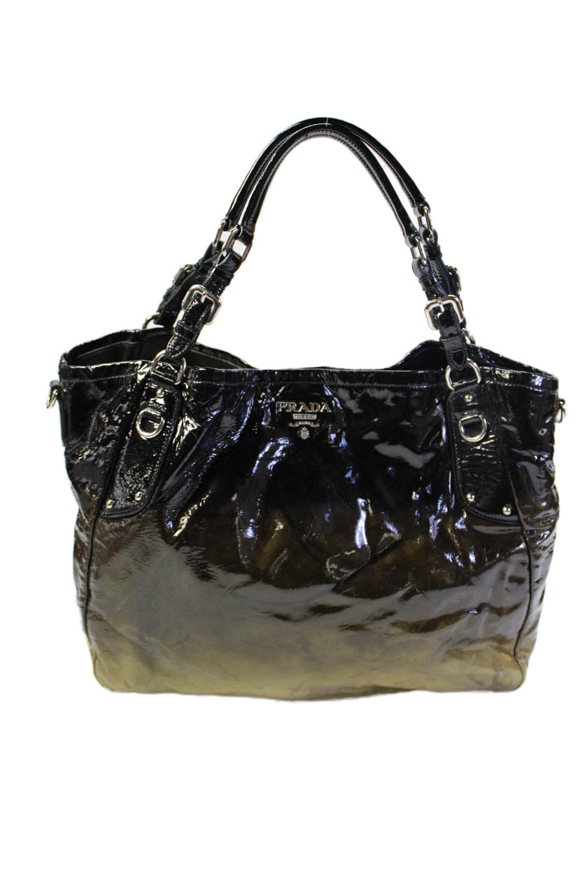 Prada Womens Vernice Leather Sfumata Shoulder Bag Black