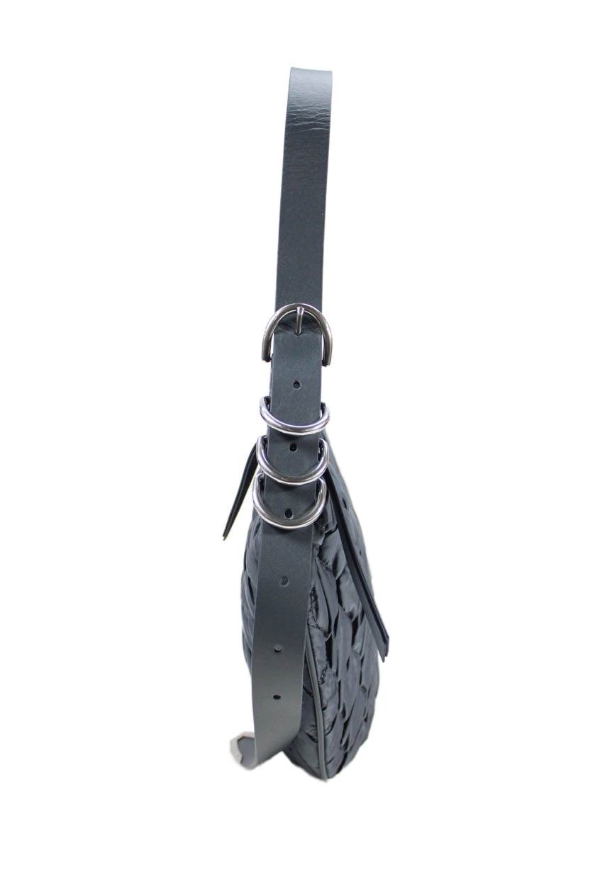 Rag & Bone Womens Quilted Detail Half Circle Shoulder Bag Gray