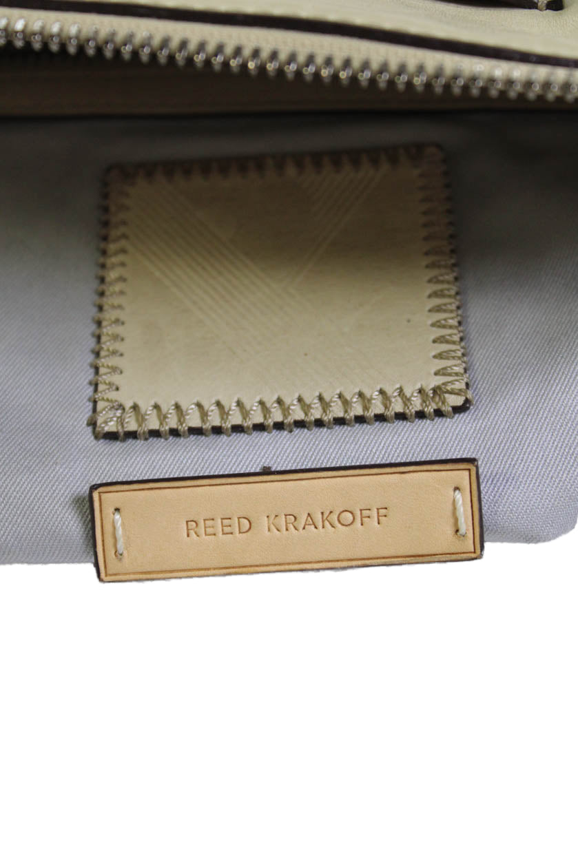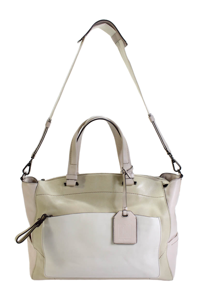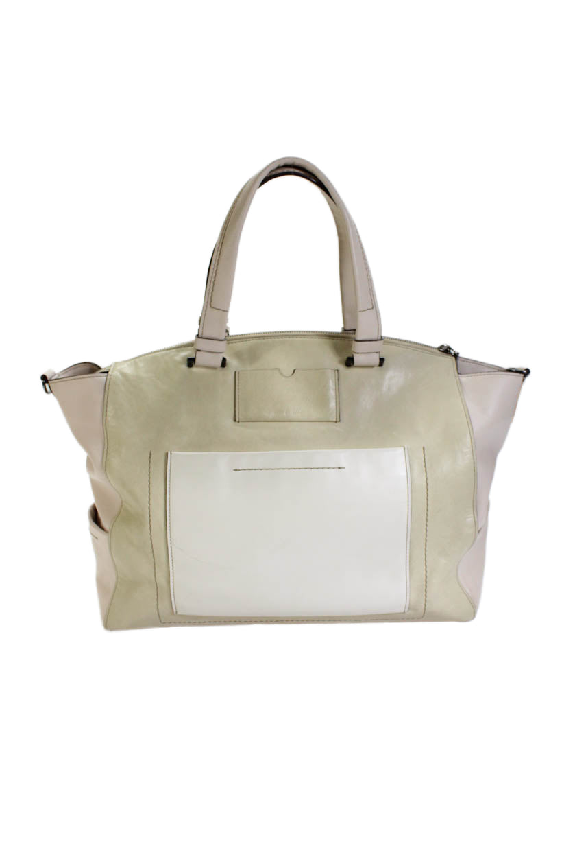 Reed Krakoff Womens Leather Color Block Tote Handbag Beige