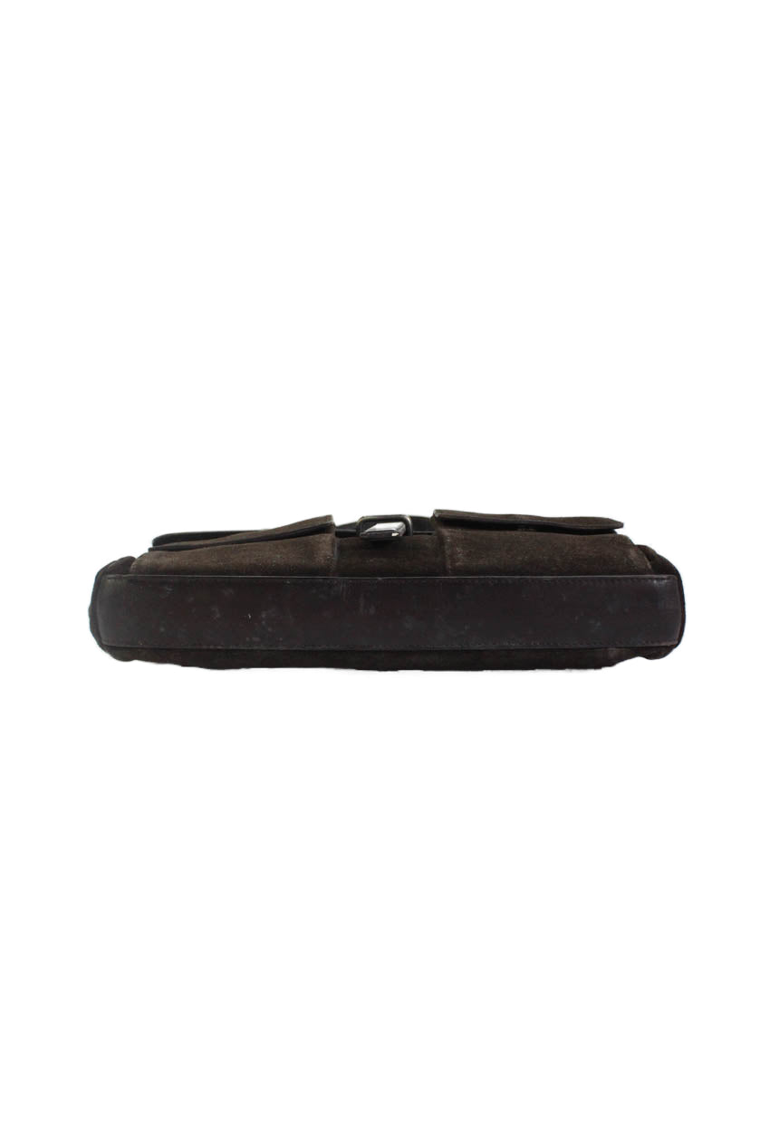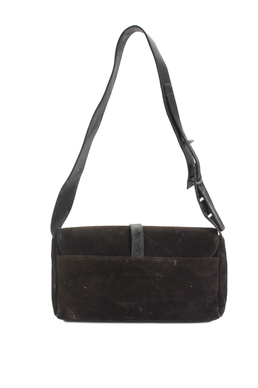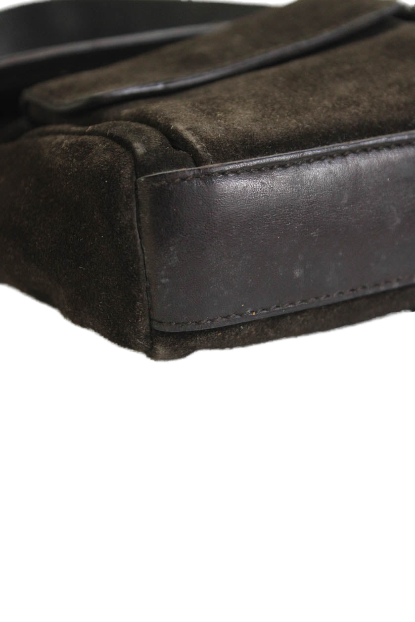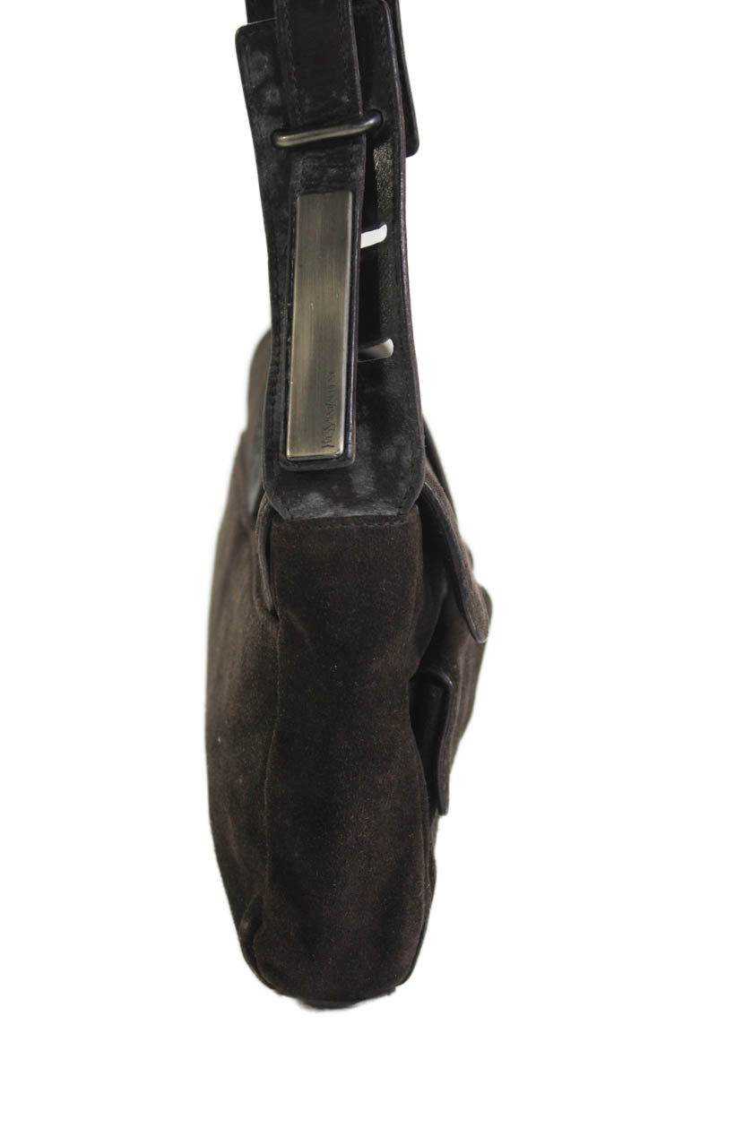 Yves Saint Laurent Womens Suede Button Closure Shoulder Handbag Dark Brown