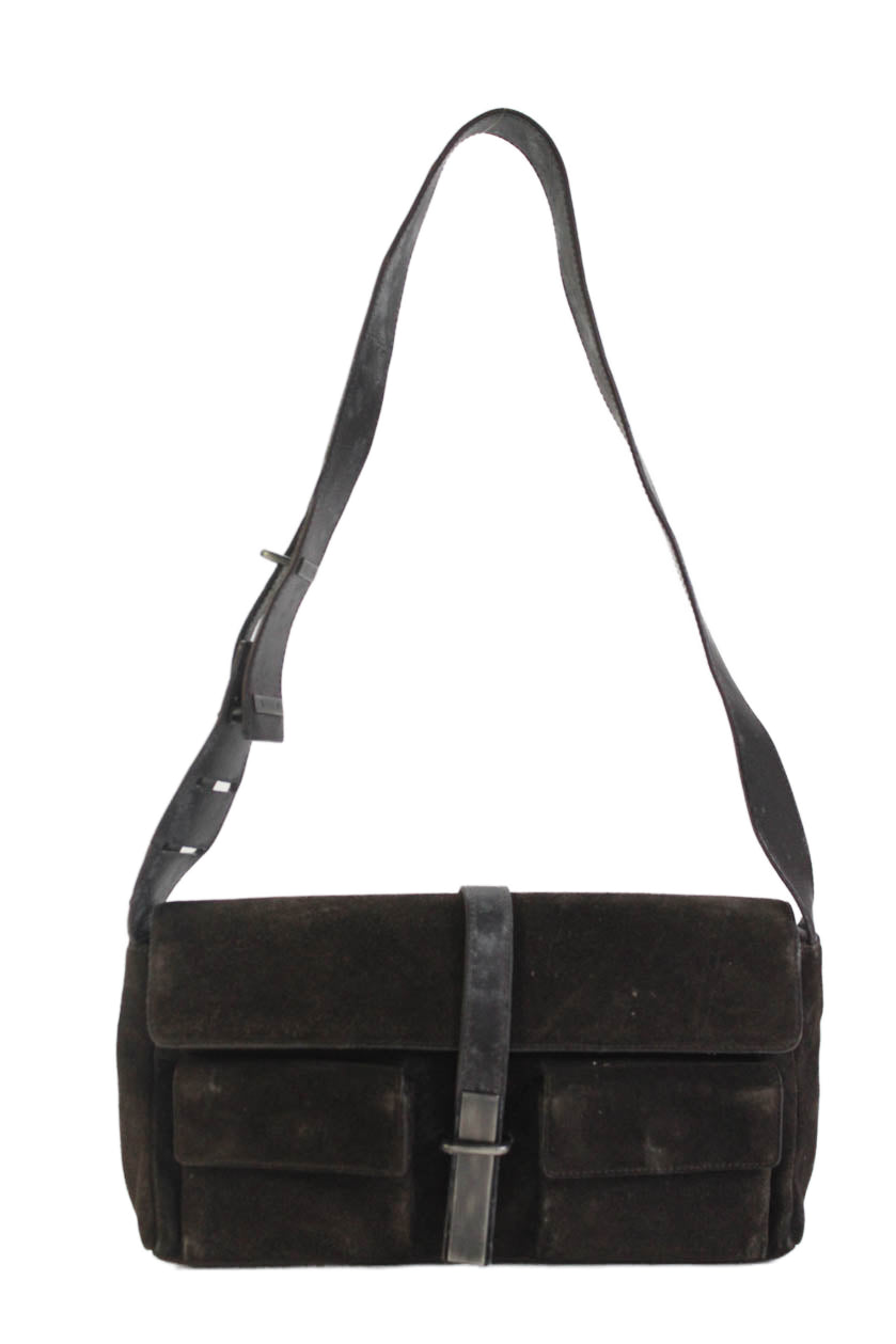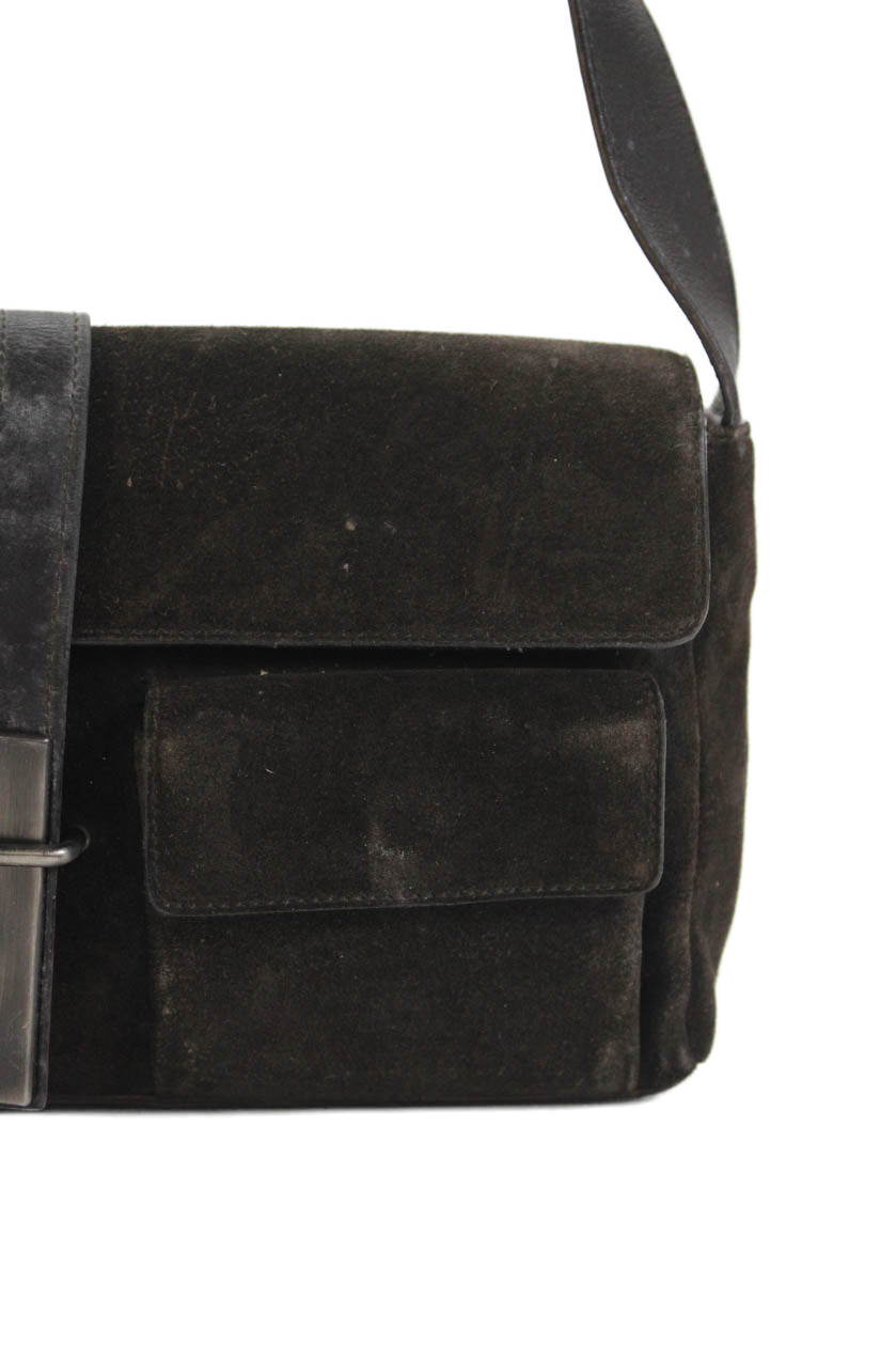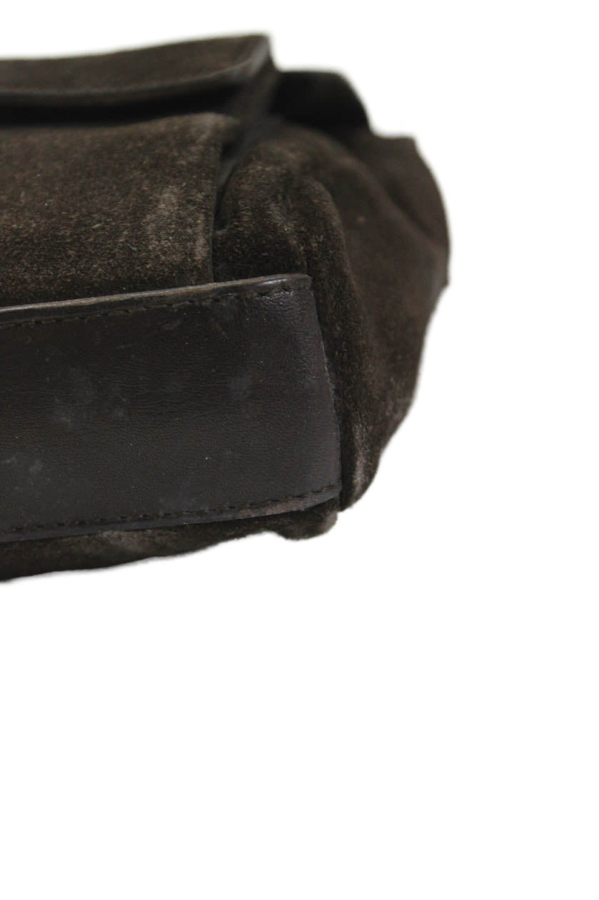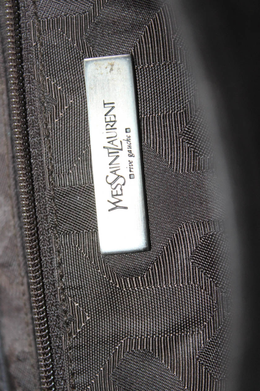 Yves Saint Laurent Womens Suede Button Closure Shoulder Handbag Dark Brown