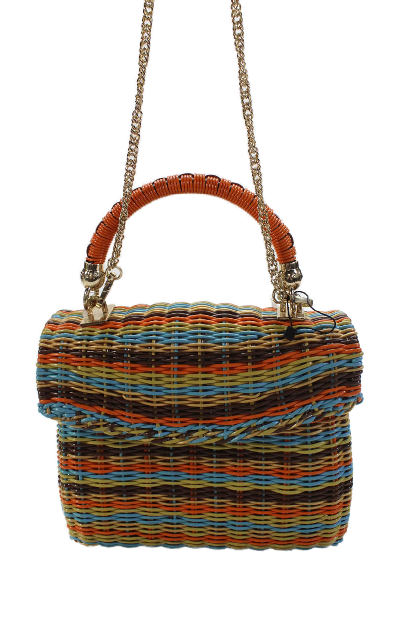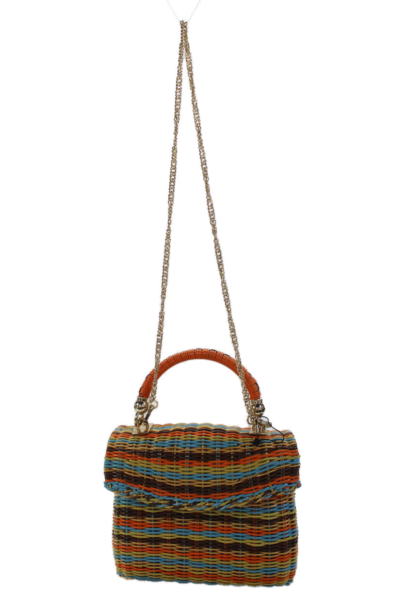 Zara Woman Womens Woven Striped Chain Strap Purse Multicolor