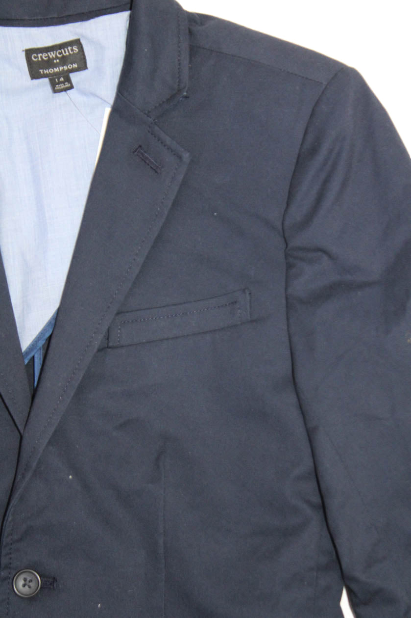 Crewcuts Boys Cotton Collared Pocketed Two Button Blazer Dark Blue Size 14
