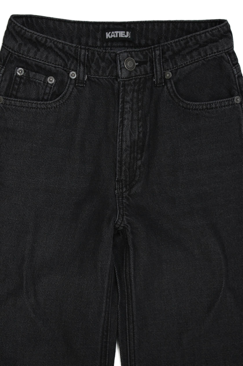 Katie J Childrens Girls Wide Leg High Rise Jeans Black Cotton Size 14