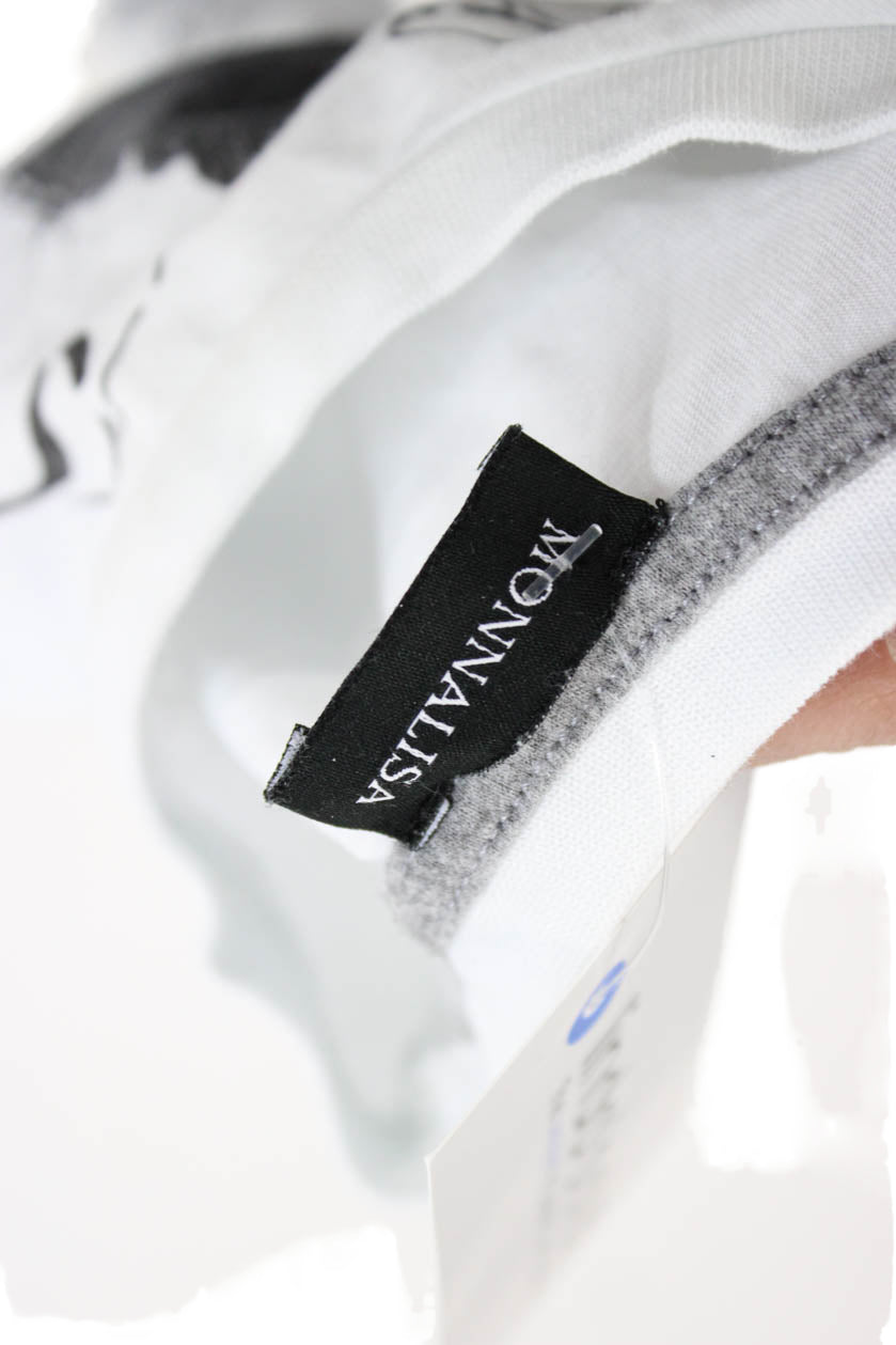 Mona Lisa Collection Boys Cotton Graphic Cartoon Long Sleeve Top White Size 4