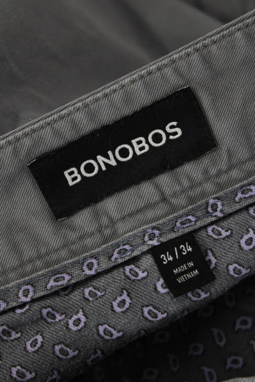 Bonobos Mens Gray Chino Pants Button 98% Cotton Size 34
