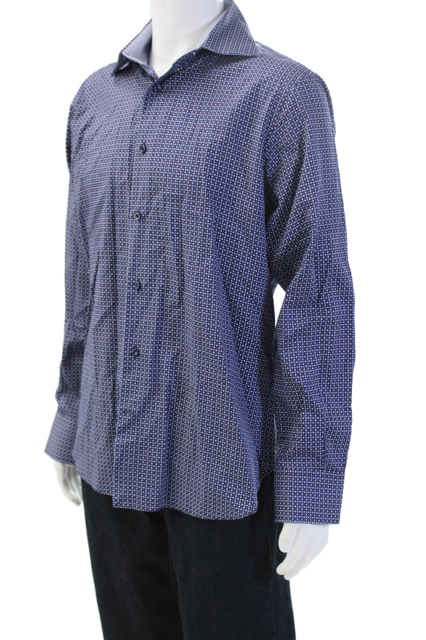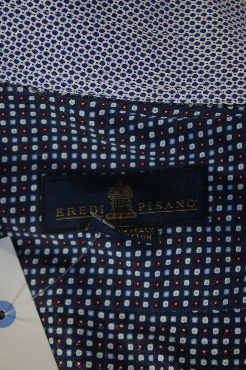 Eredi Pisano Mens Spread Dress Shirt Dark Blue Geometric Long Sleeve Size L