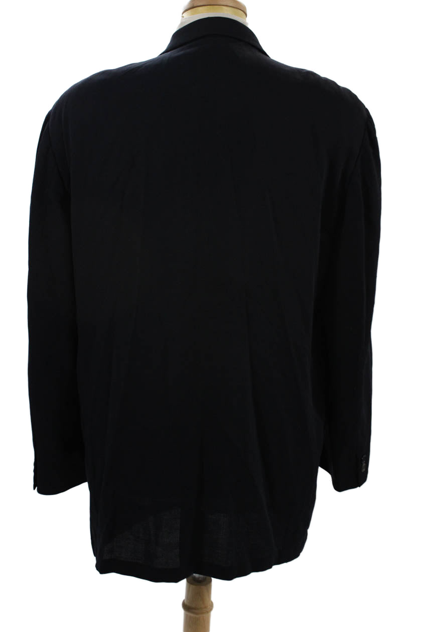 Ermenegildo Zegna Mens Dark Blue Herringbone Blazer Button Collared Size 44