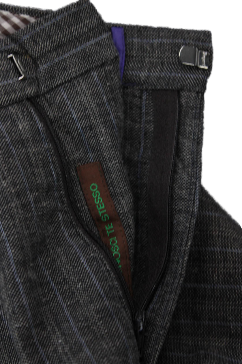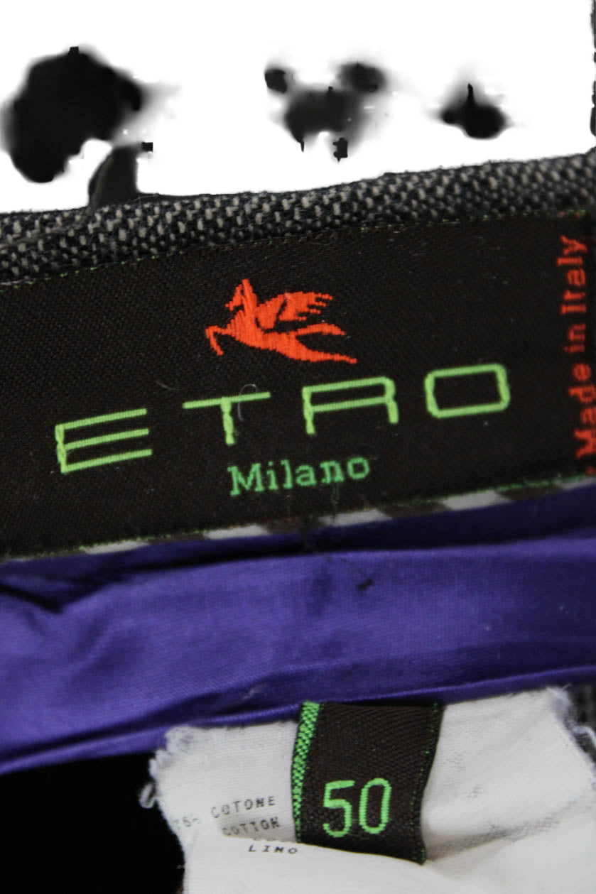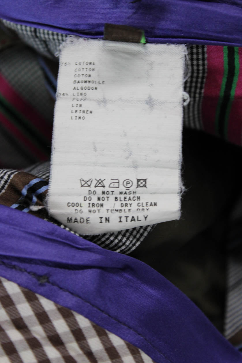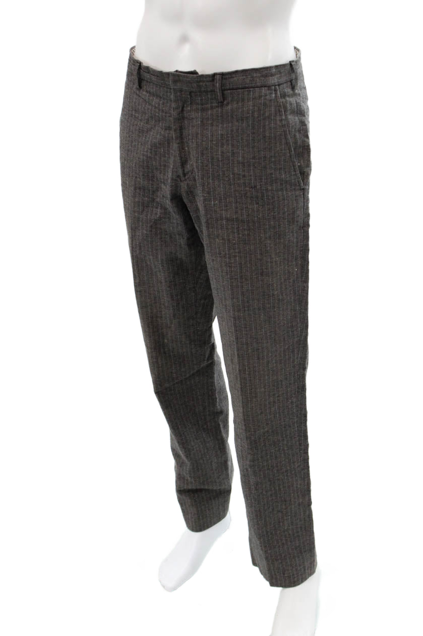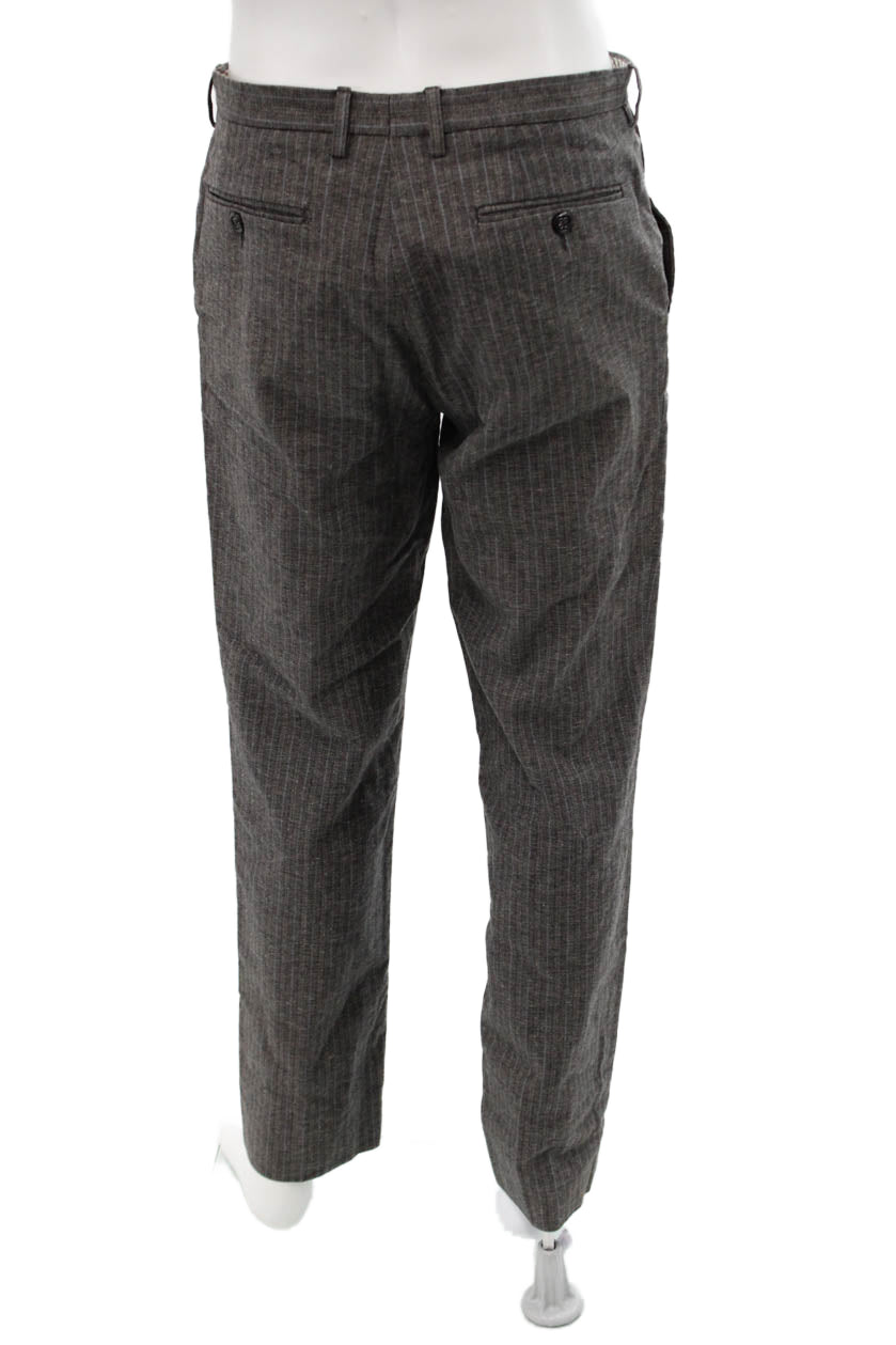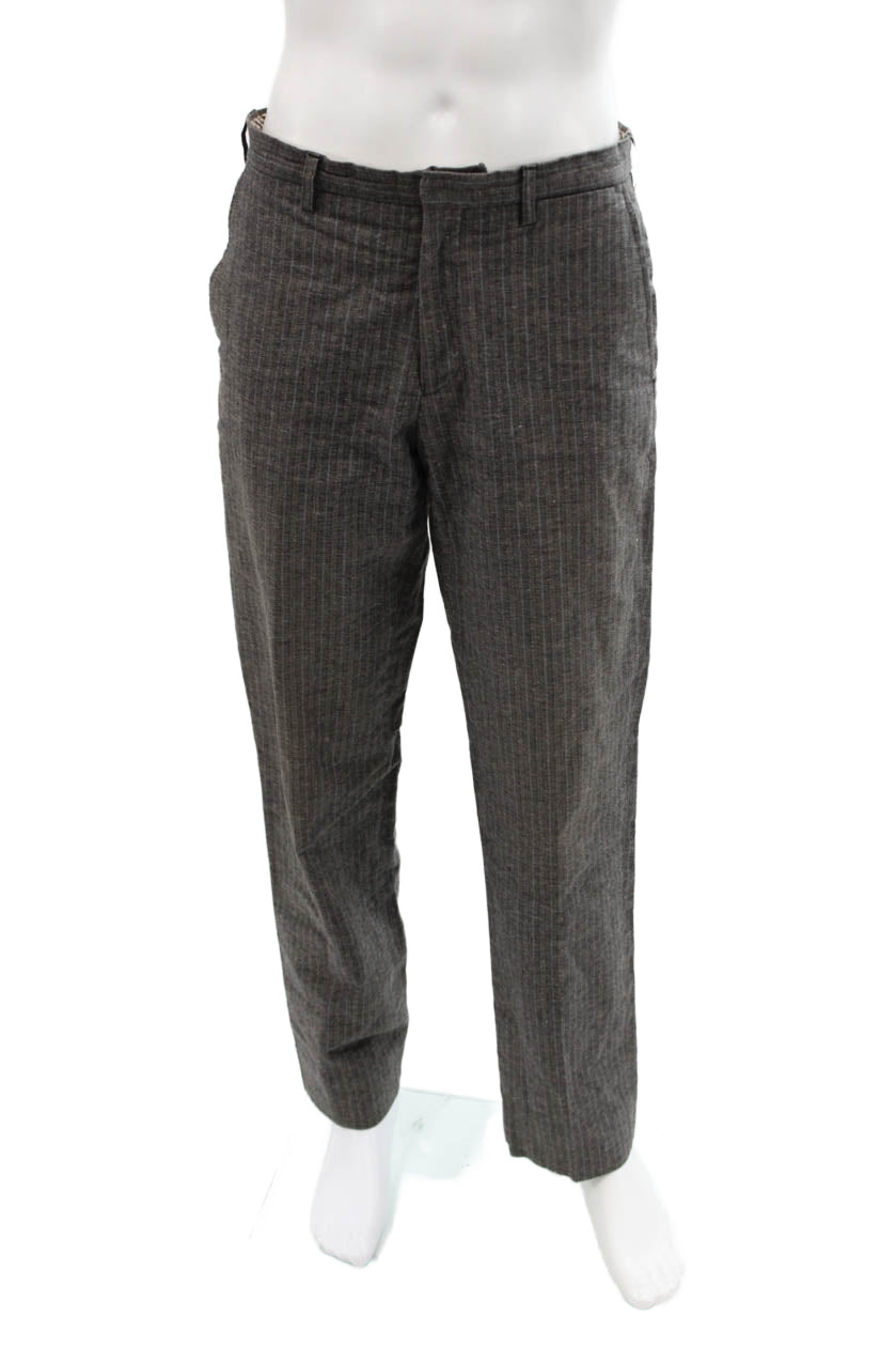 Etro Mens Striped Brown Cotton Linen Dress Pants Button Classic Size 50