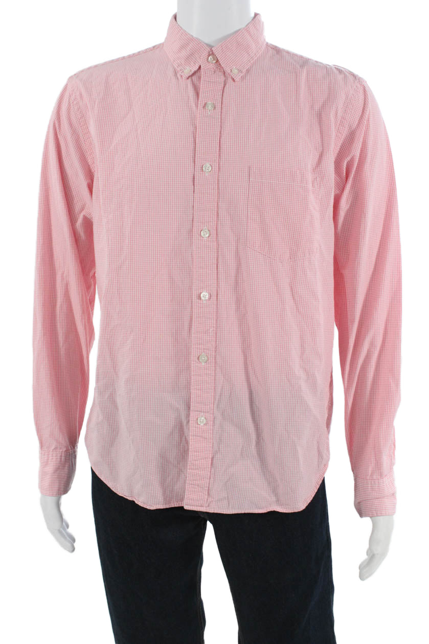 • J Crew Mens Plaid Slim Fit Button Down Shirt Pink Cotton Size Large