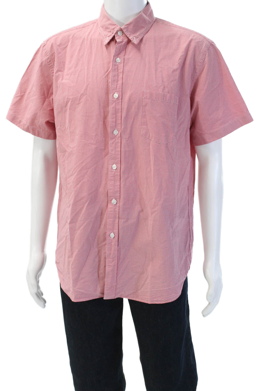 J Crew Mens Red Check Short Sleeve Collared Button-Down Cotton Shirt Size XL