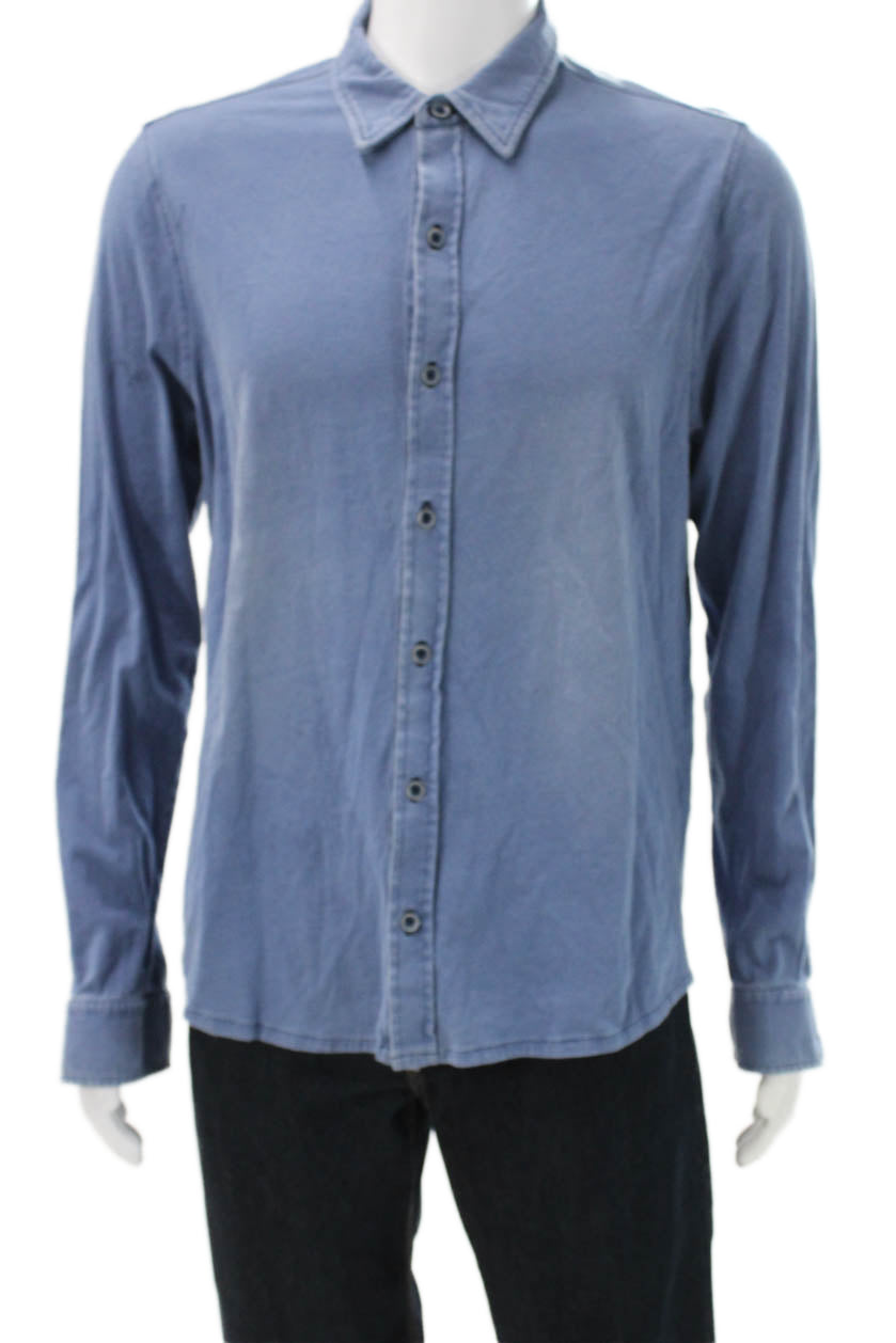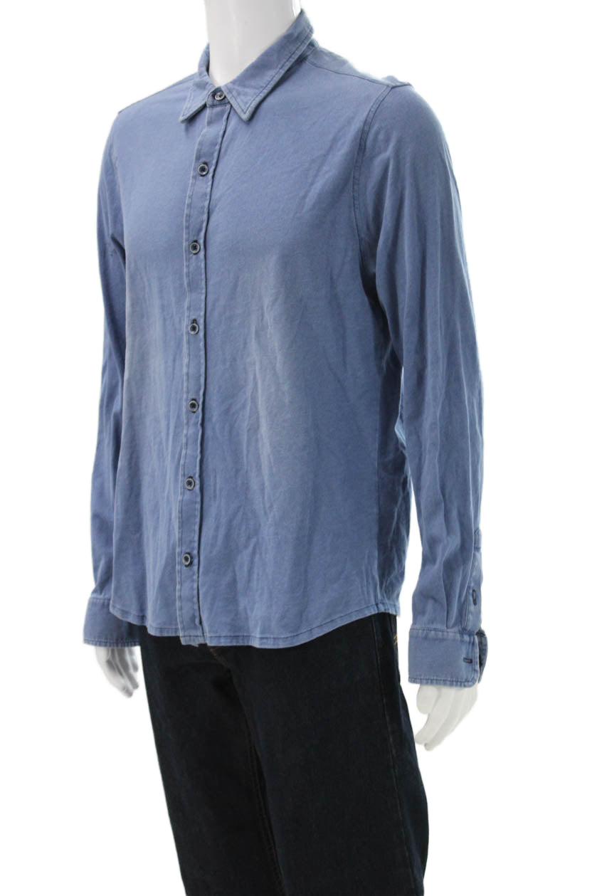 Leonard Frisbie Mens Button Front Long Sleeve Collared Shirt Blue Size Small