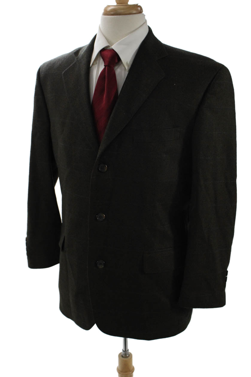 Stafford Mens Brown Check Wool-Cashmere Suit Jacket Size 40