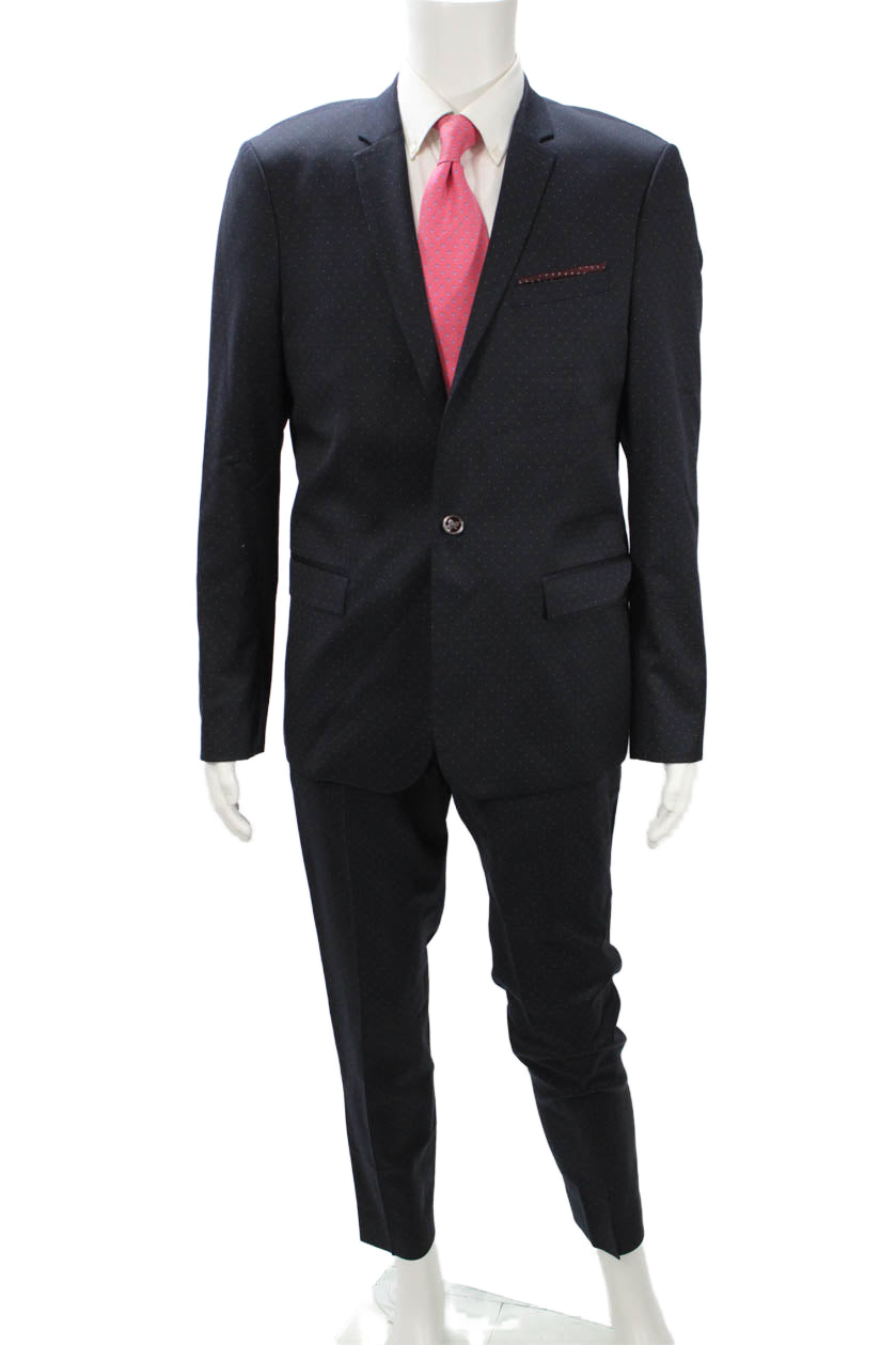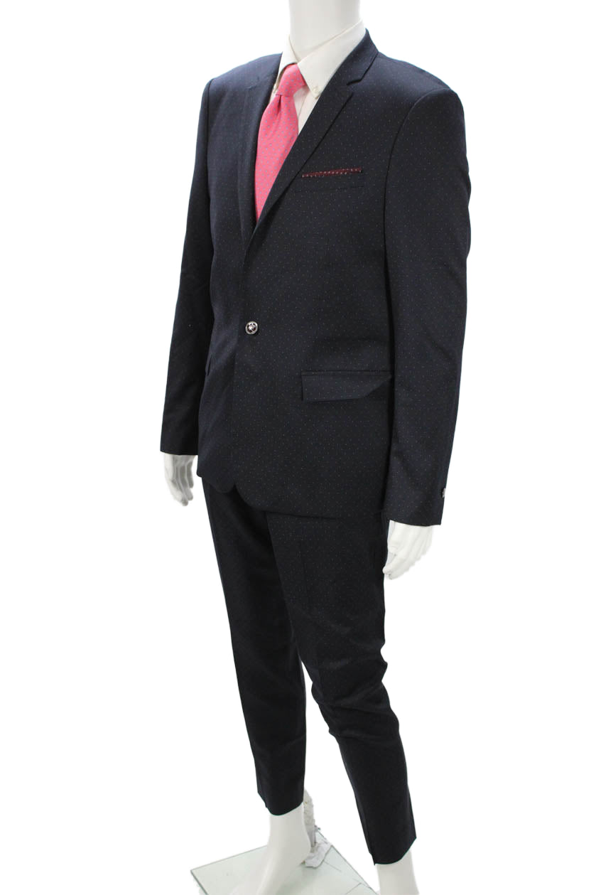 The Kooples Mens Dark Blue 2 Piece Wool Polka Dot Suit Button Collar Size 50
