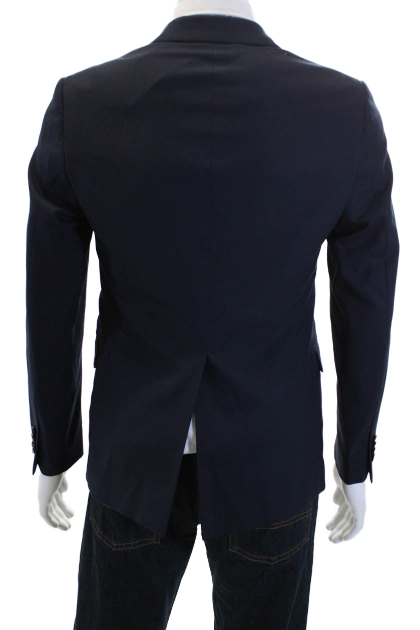 Theory Mens Dark Blue Wool Blend Blazer Collared Button Solid Size 36