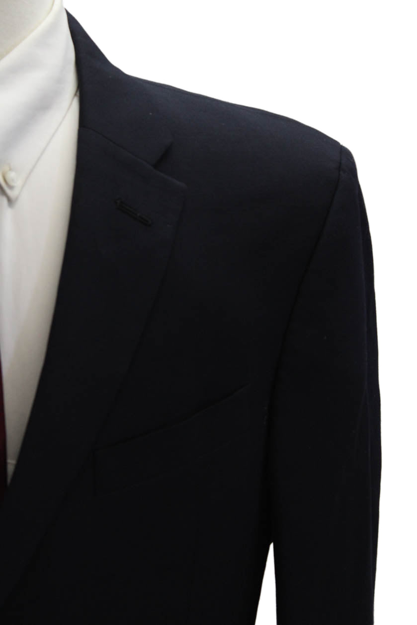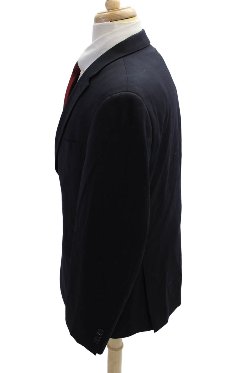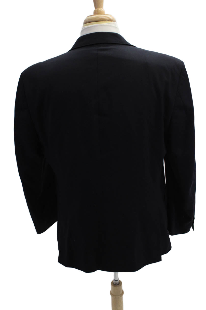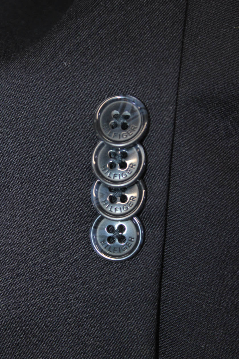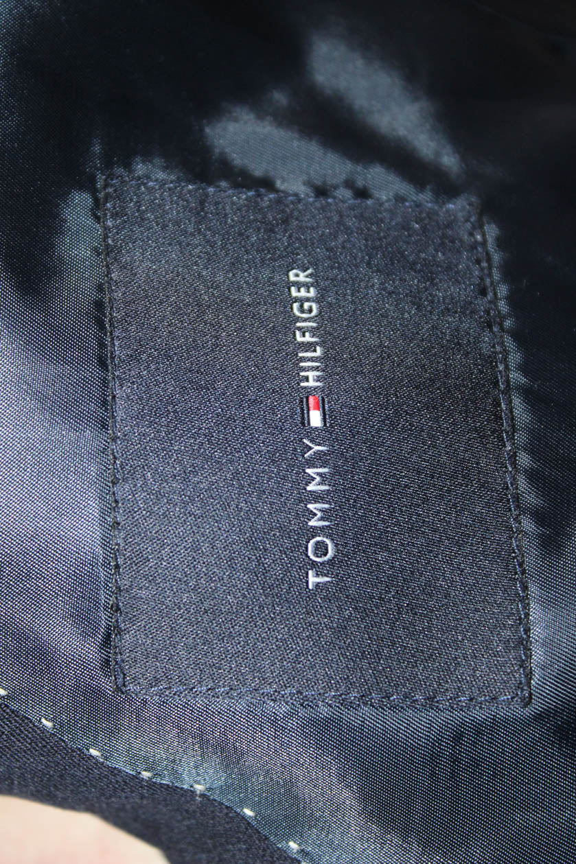 Tommy Hilfiger Mens Dark Blue Wool Blazer Collared Button Solid Fall Size 42