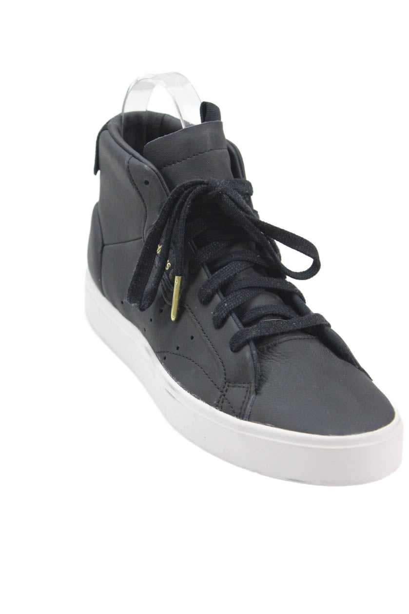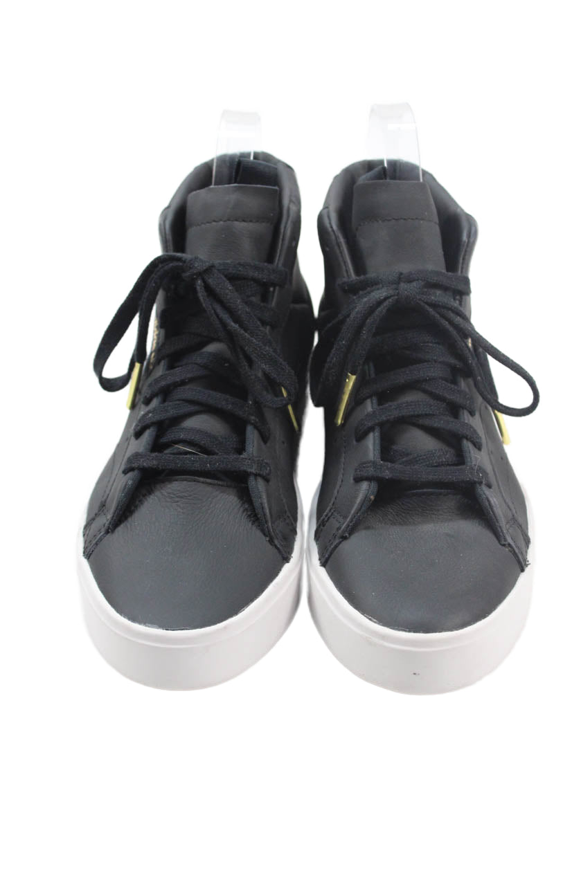 Adidas Womens Leather High Top Lace Up Sneakers Black Size 5.5