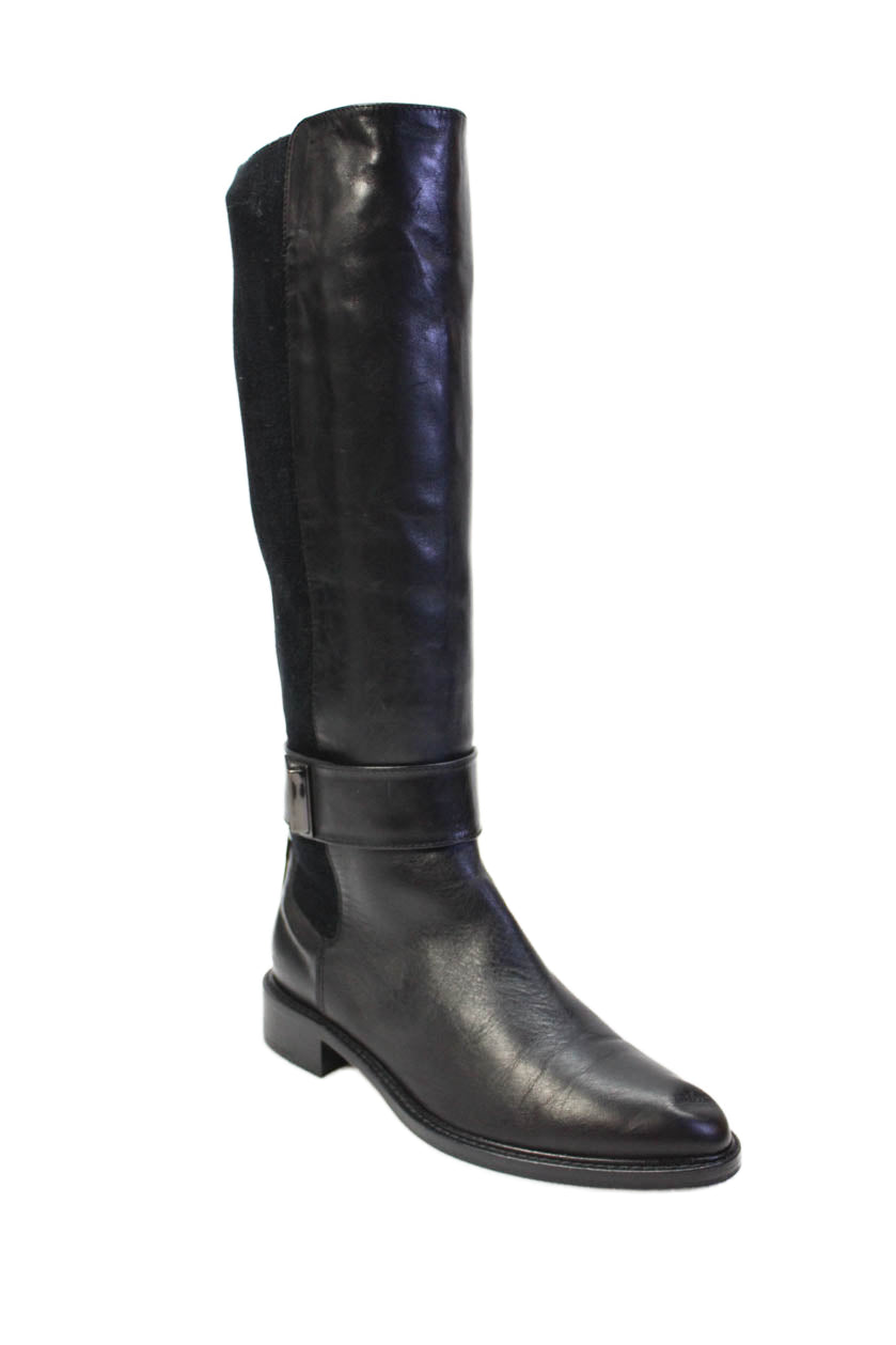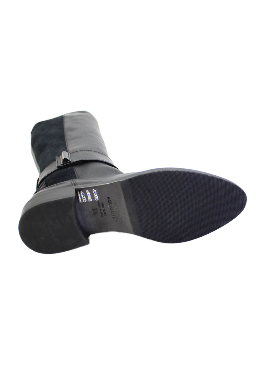 Aquatalia Womens Slip On Block Heel Knee High Boots Black Leather Size 7.5
