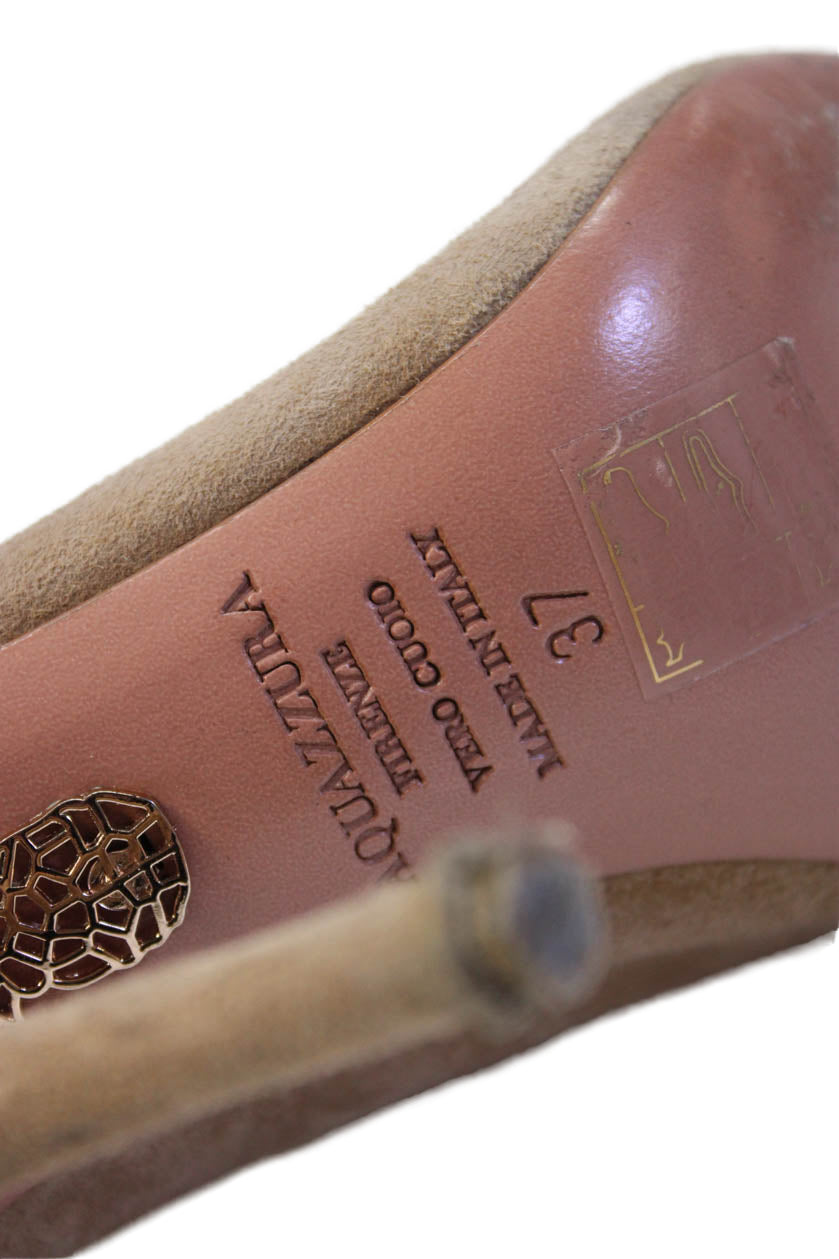 Aquazzura Womens Suede Open Toe Heels Beige Size 37 7