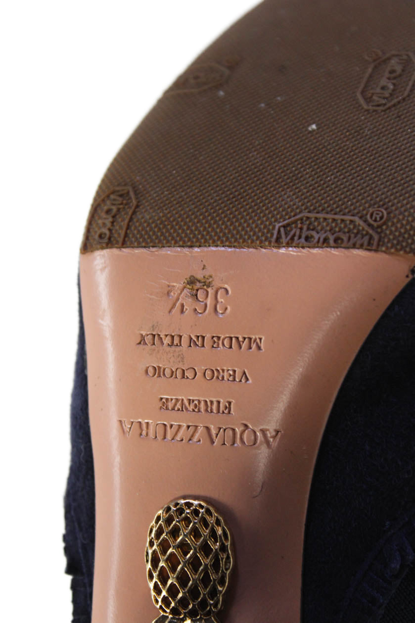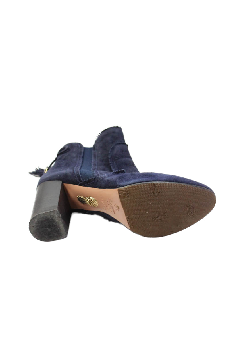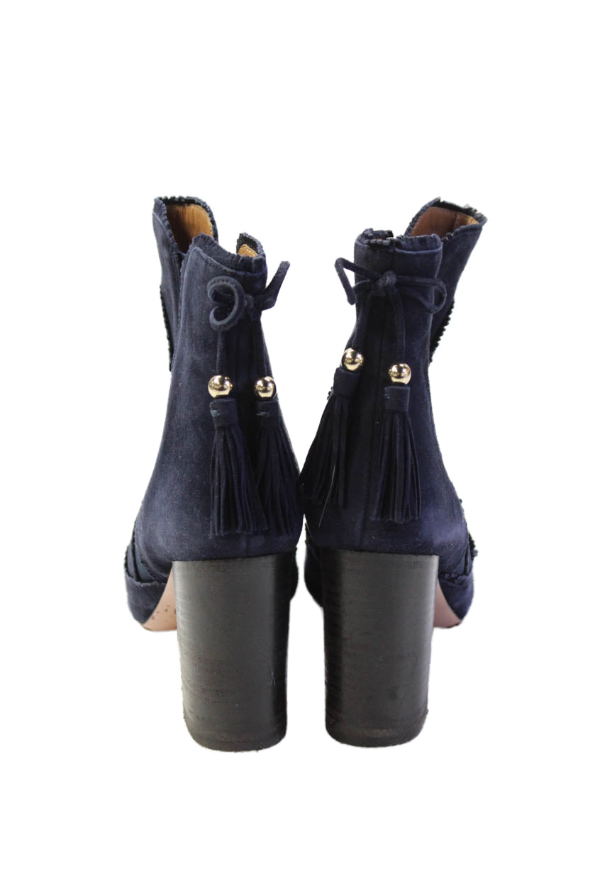 Aquazzura Womens Suede Tassel Detail Block Heels Ankle Boots Shoes Blue Size 6.5