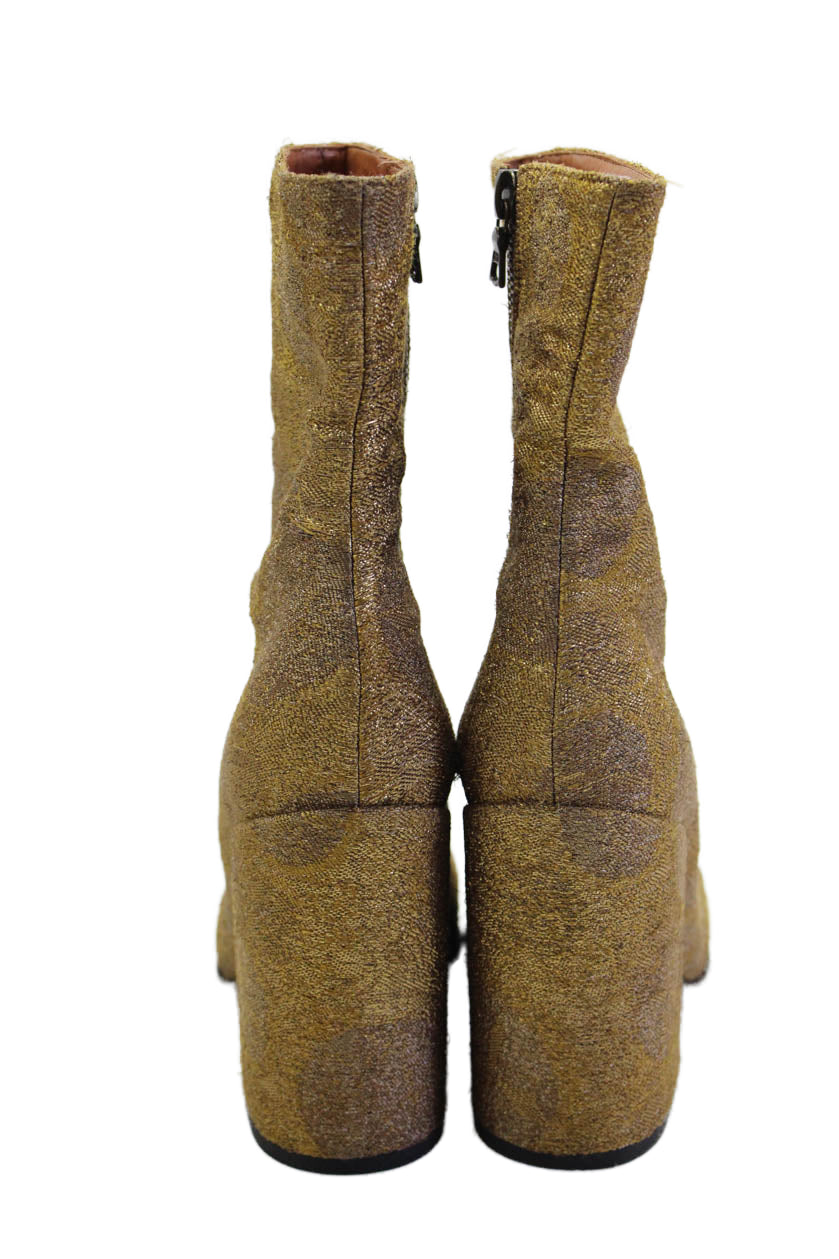 • Dries Van Noten Womens Side Zip Block Heel Cap Toe Booties Brown Size 36