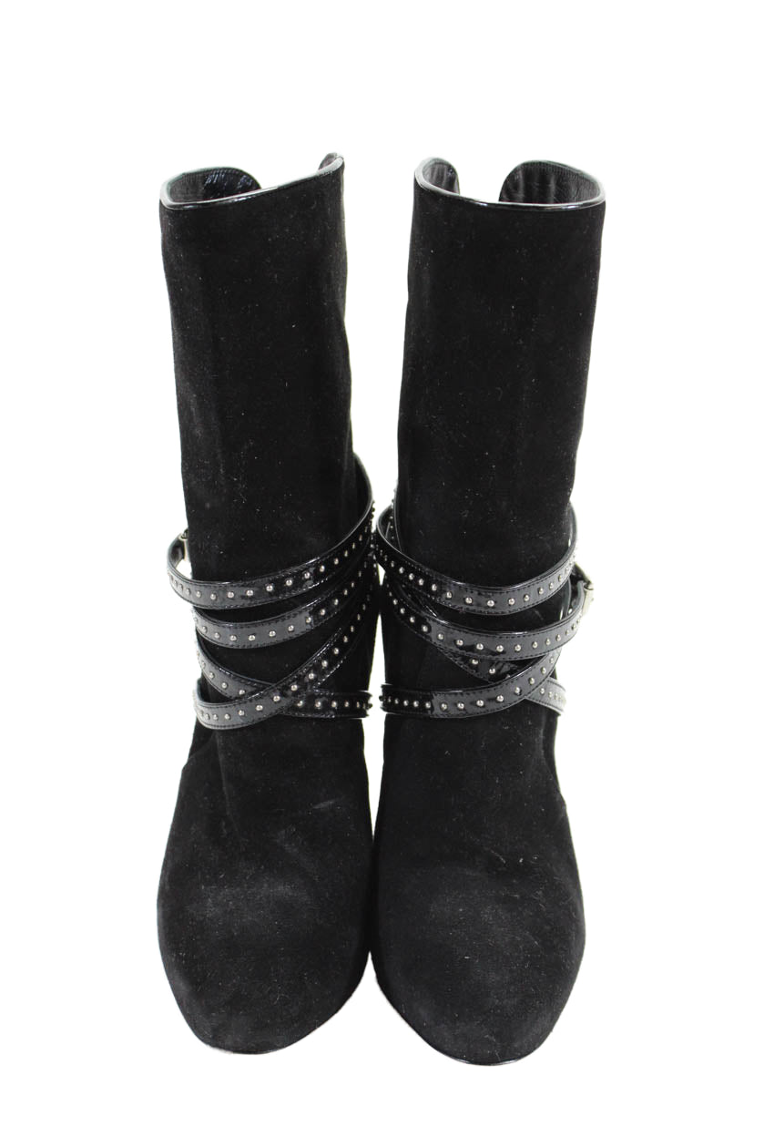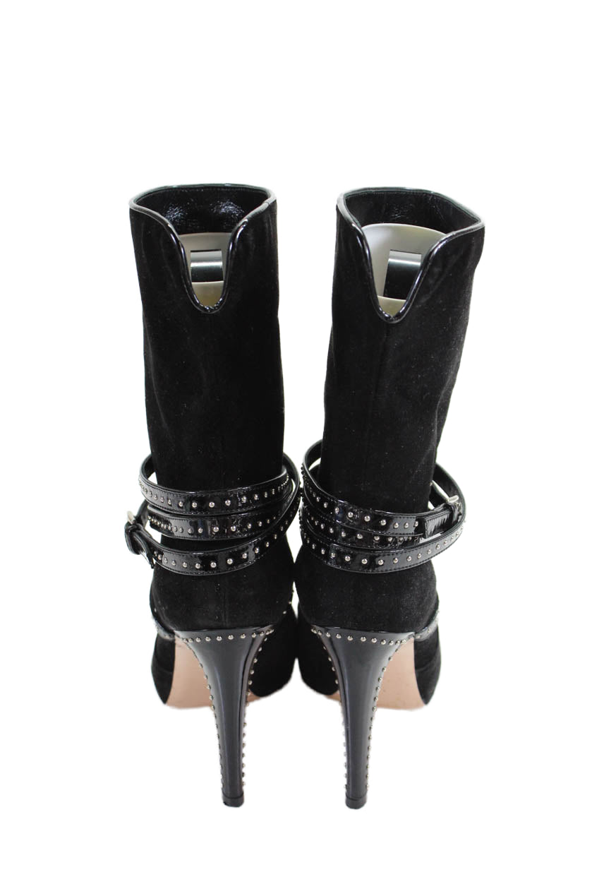Gianvito Rossi Womens Suede Studded Belted Ankle Boots Black Size 36.5 6.5