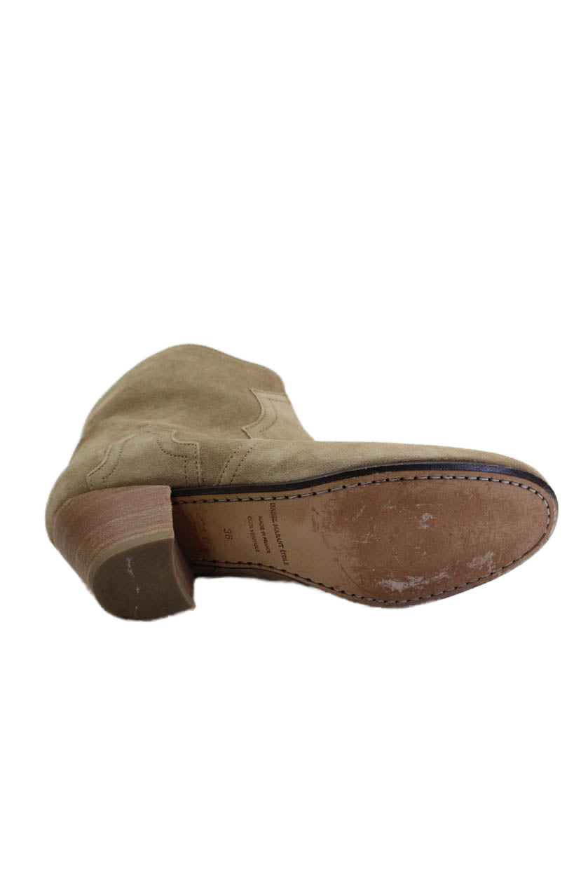 Isabel Marant Etoile Womens Side Zip Block Heel Ankle Boots Brown Suede Size 36