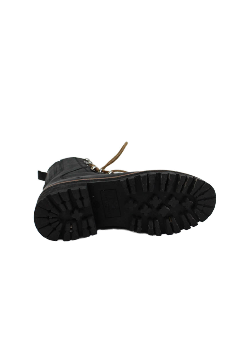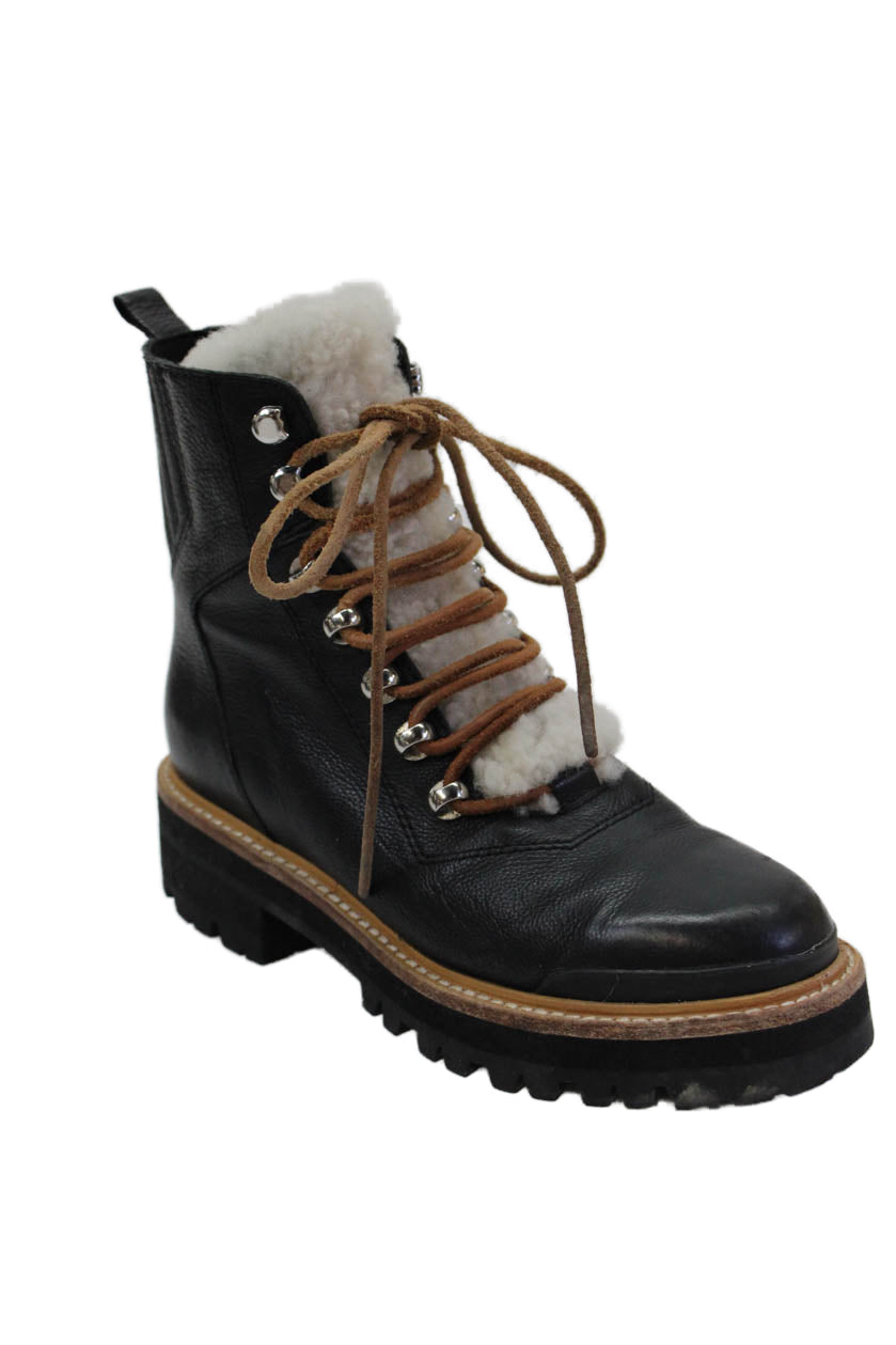 MARC FISHER LTD Womens Lace Up Block Heel Shearling Trim Boots Black Size 5.5M