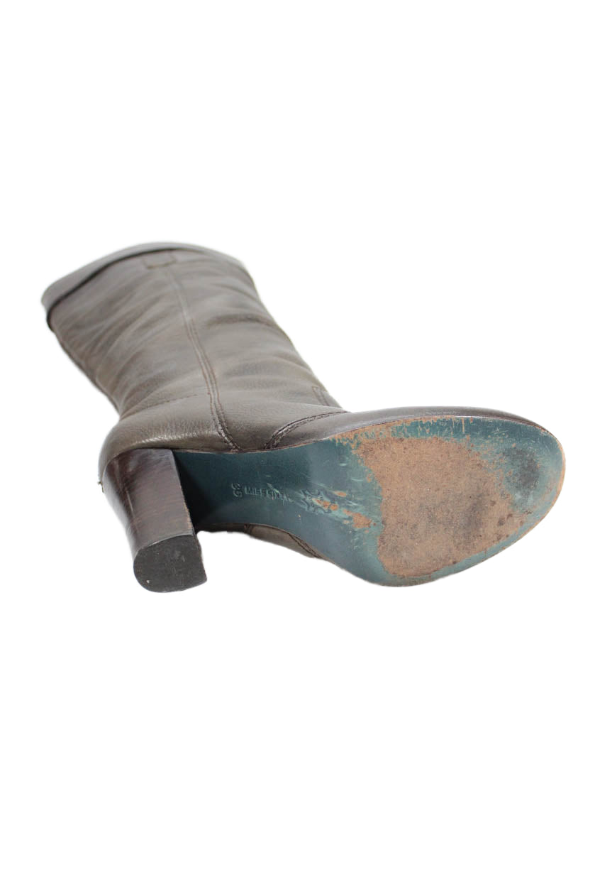 Miss Sixty Womens Leather Cuffed Knee High Boots Grey Brown Size 36 6