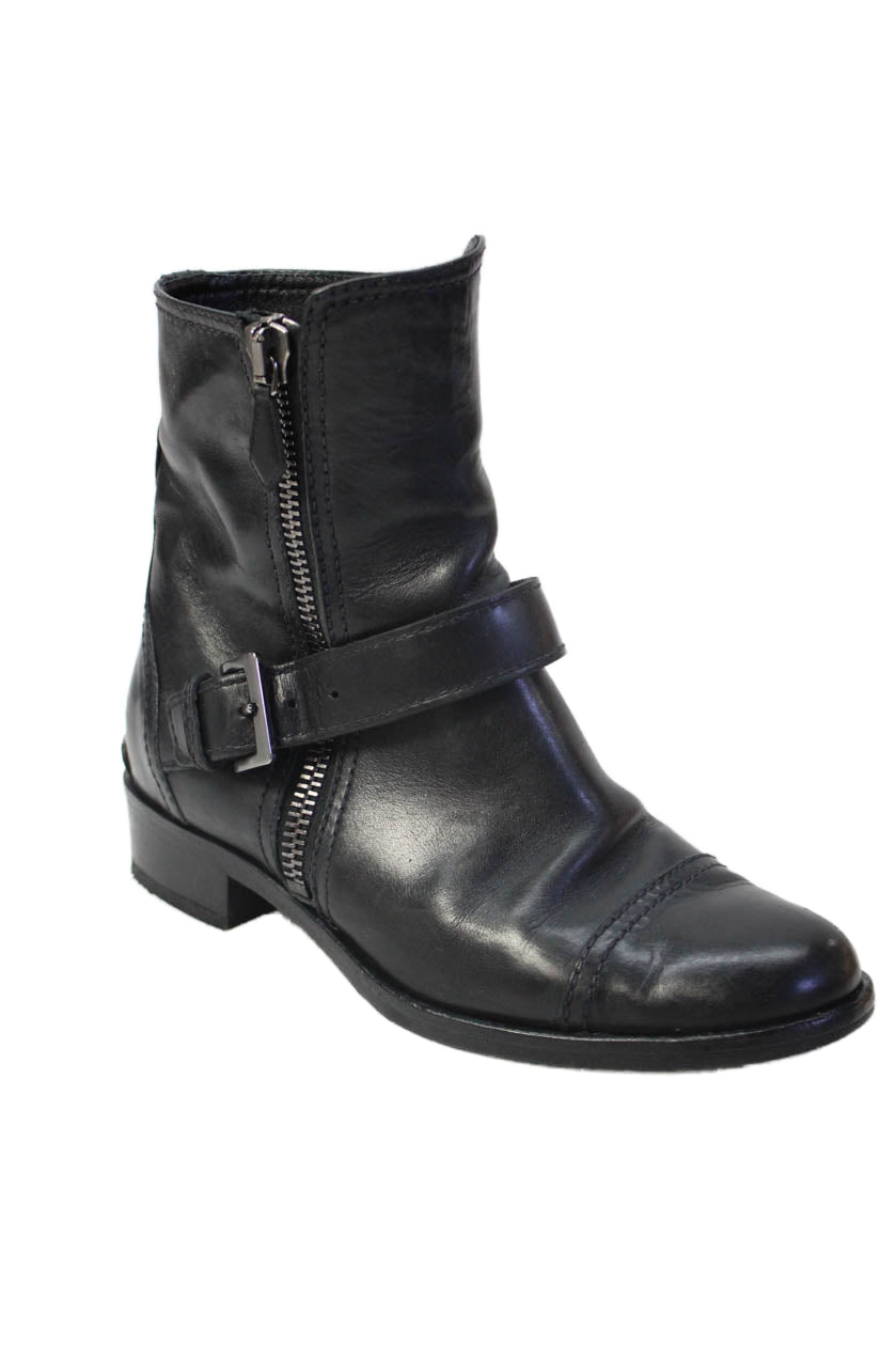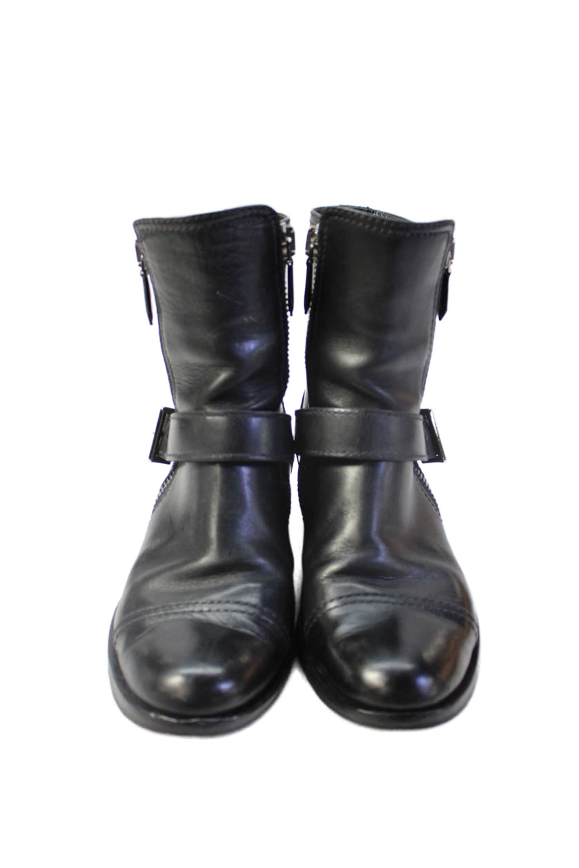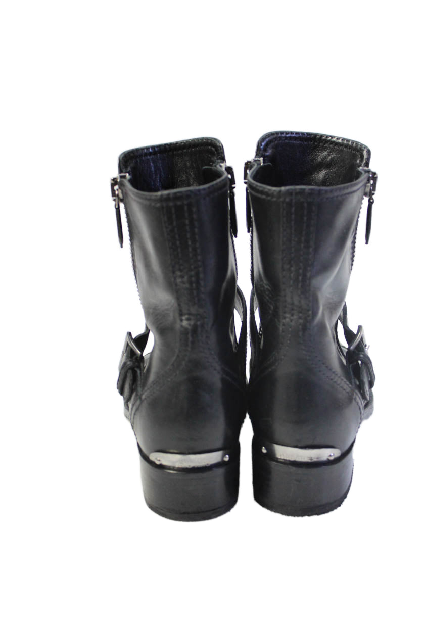Miu Miu Womens Leather Zip Up Belted Biker Ankle Boots Black Size 39 9
